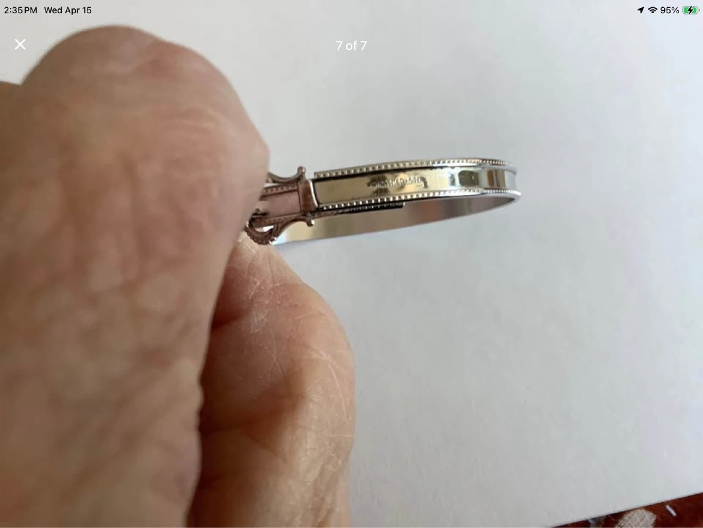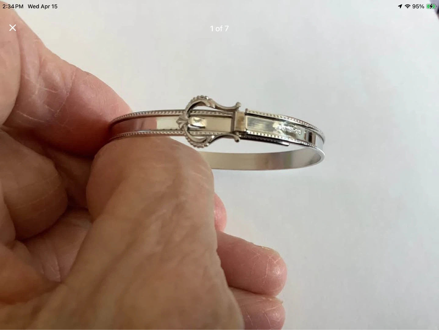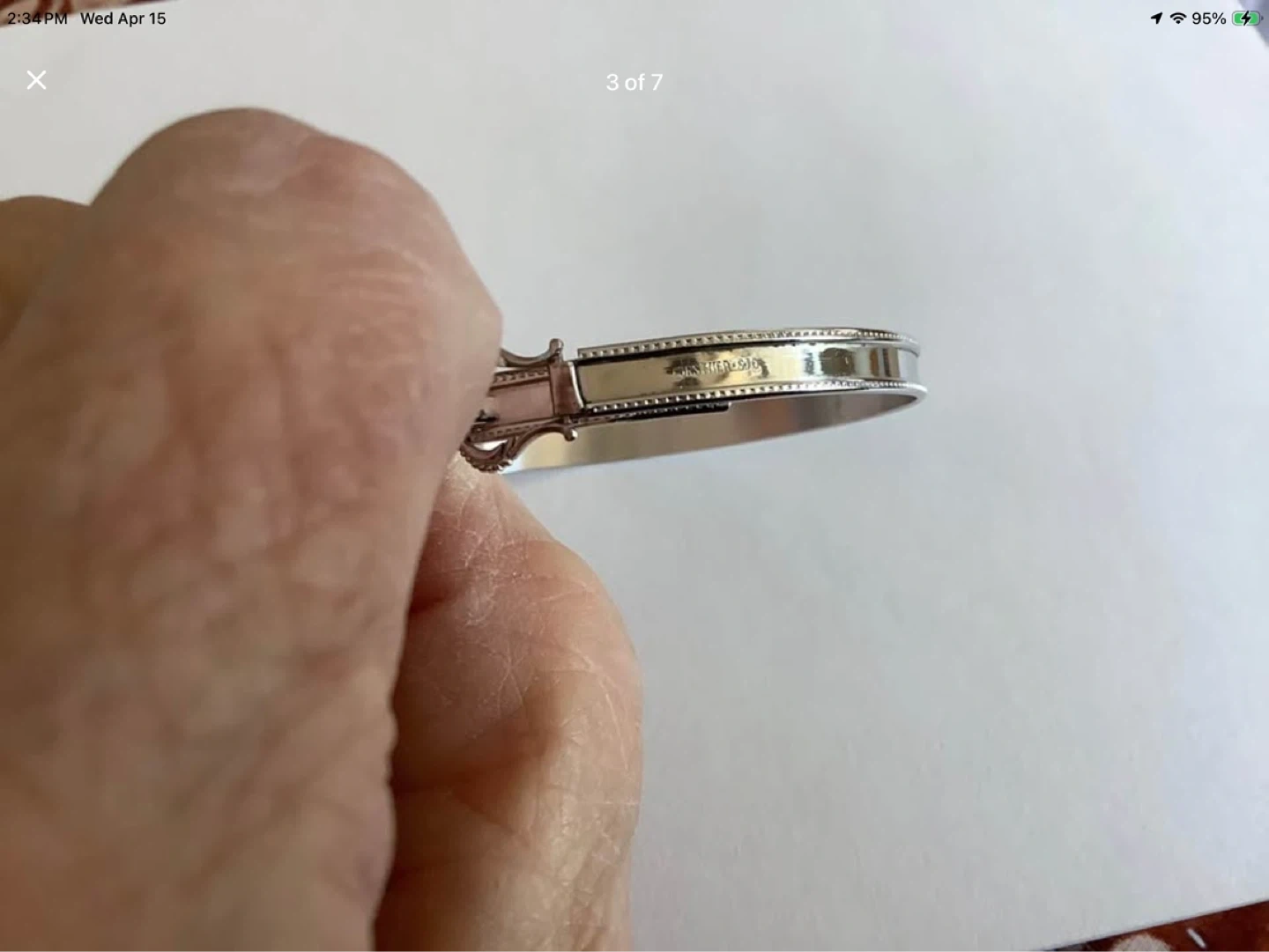 Vintage Forstner sterling silver children’s bangle bracelet with decorative edging.