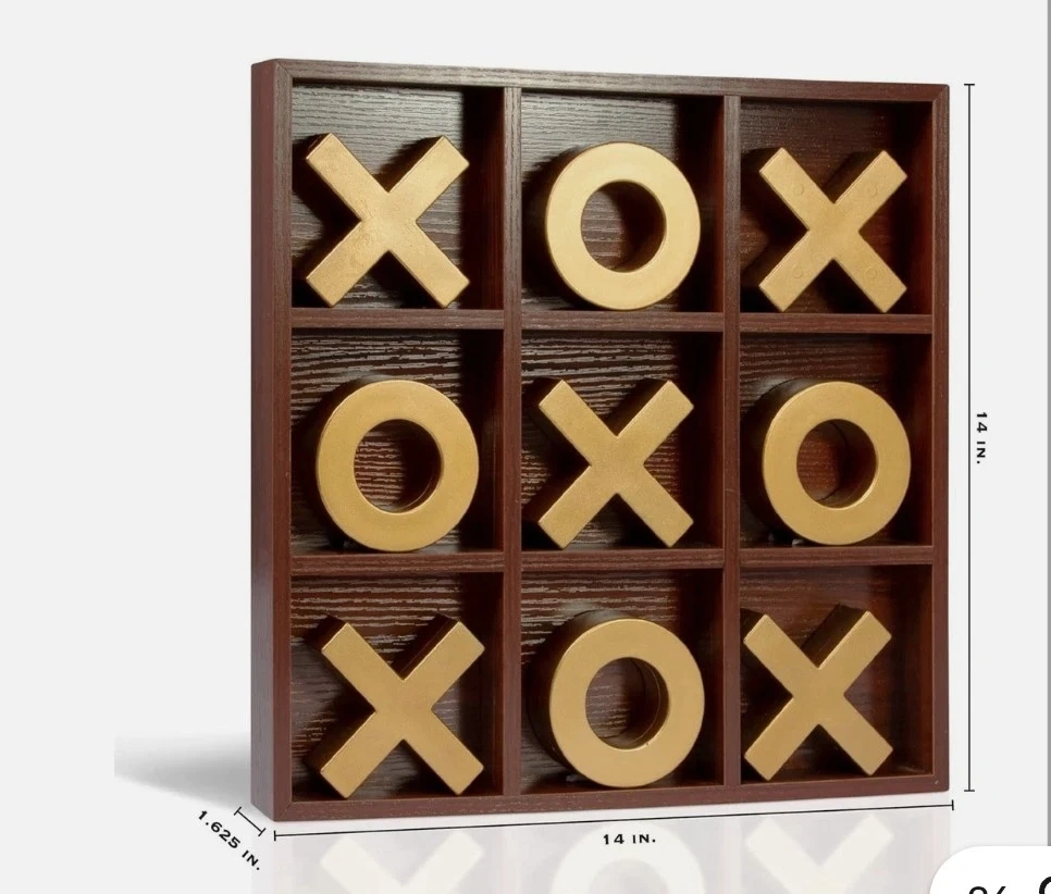 Spruce up your coffee table or any indoor area with this Refinery and Co. wooden tic-tac-toe board! This game features premium rustic solid wood design plus gold painted X and O pieces that'll add a charming accent to your office, home decor, for quick gift π or use for staging, all new in box.