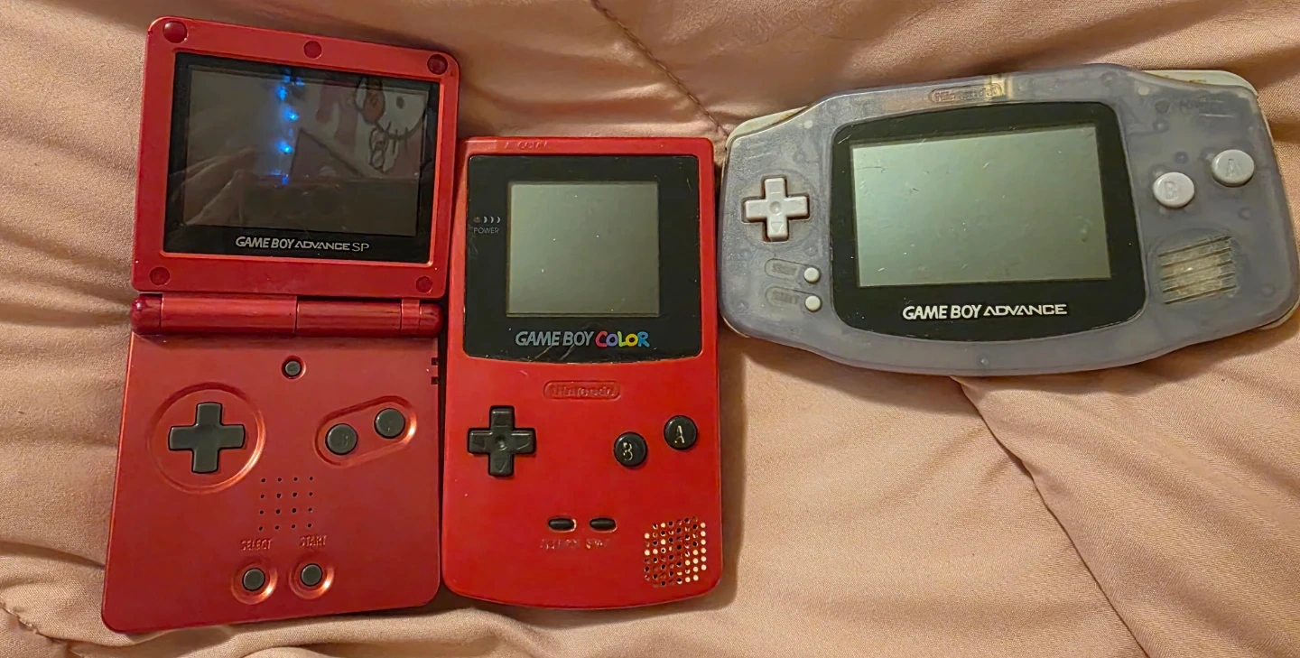 Selling my old school original Blue 3DSXL, Pink Gameboy color, Silver Gameboy advance and Red Gameboy advance sp. Been quite used over the years, had them since I was a kid. A few minor scratches, dirt/dust, battery back covers are missing for both Gameboy advance and gameboy color and Gameboy advance sp doesn't include charger but overall been TESTED and still all WORKING! 3DSXL does come with charger, original box and manuals. selling them at a very low price then they are being sell on the market. Asking for $400 in bundle.