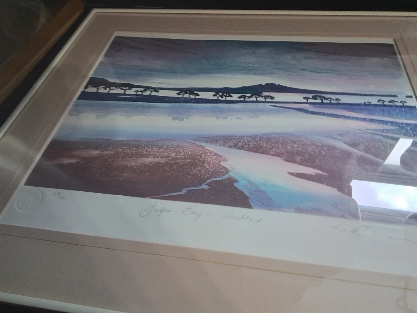 This is a beautiful framed limited edition print, 'Judges Bay - Auckland' by Karl Simm, numbered 42 Limited Edition of 80, with approximate dimensions of 26.25 inches by 22.5 inches. This piece is in excellent condition, ready to add a touch of elegance to any room.