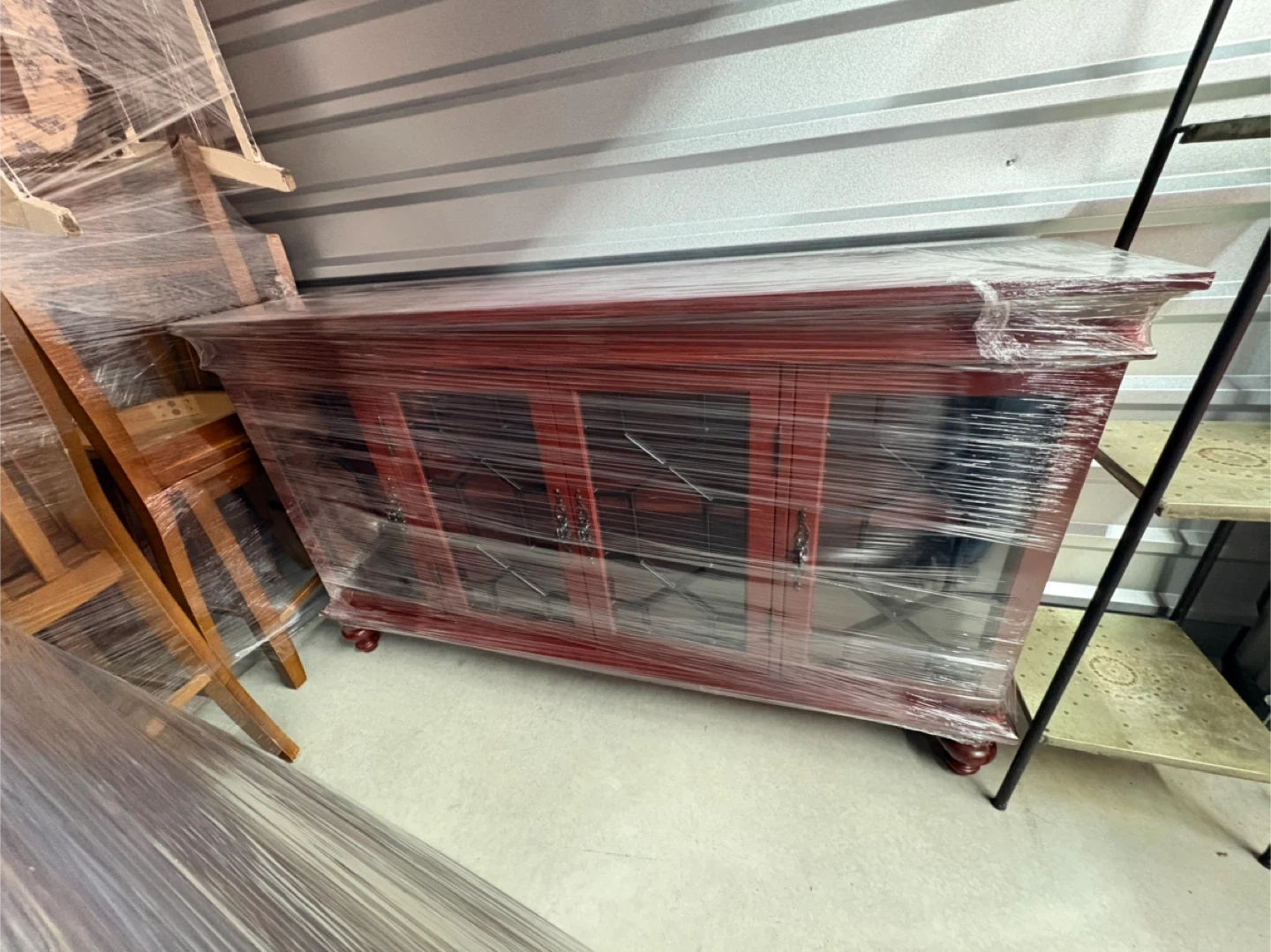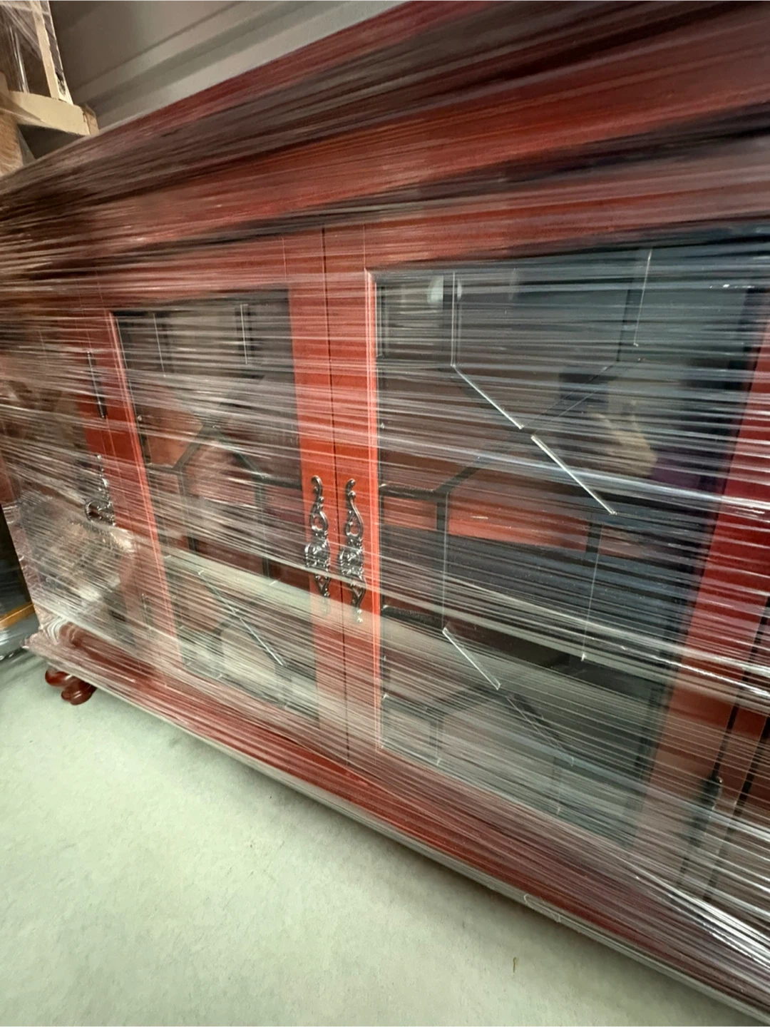 Red Wood Cabinet with Glass Doors