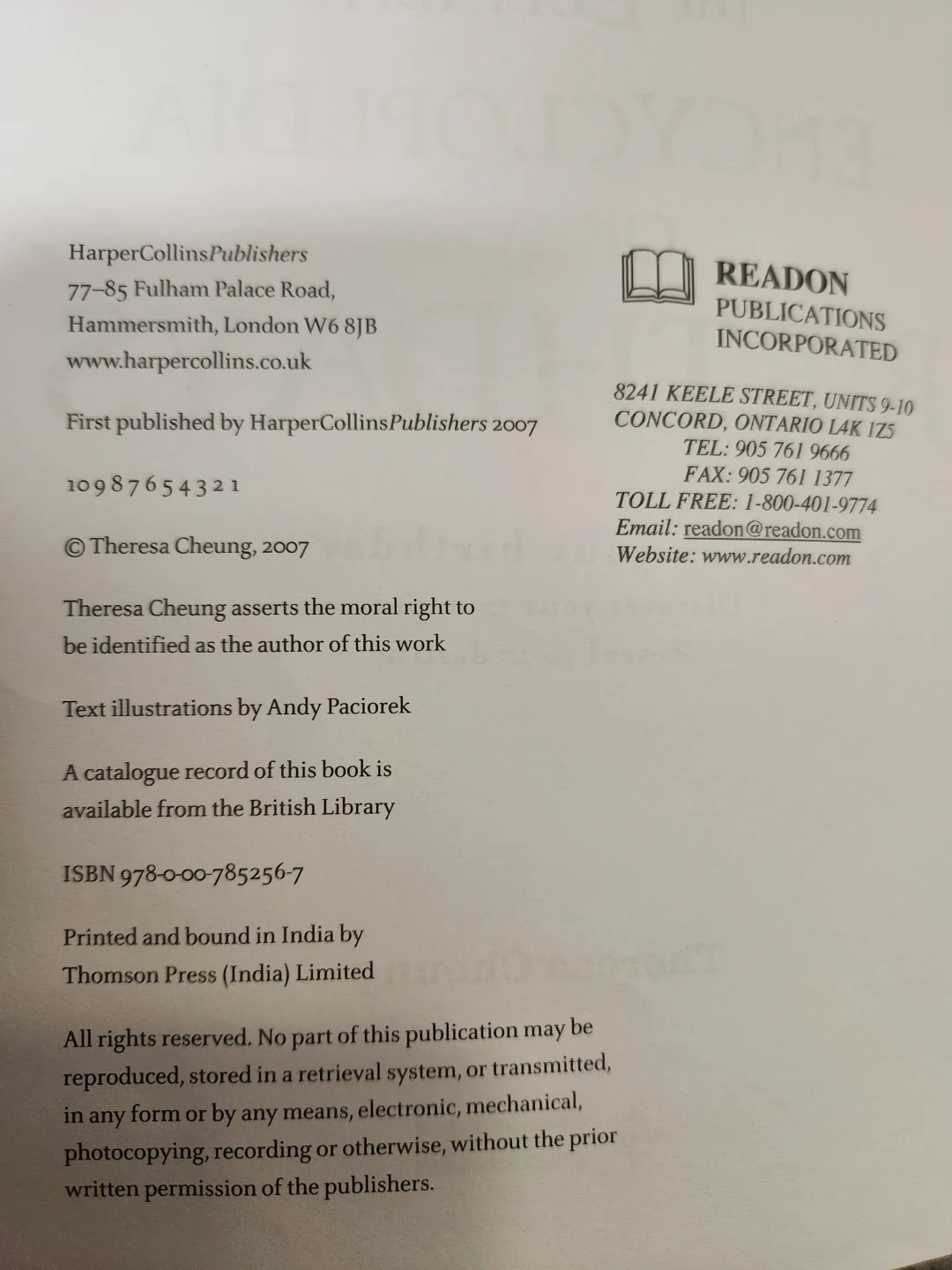 The Element Encyclopedia of Birthdays by Theresa Cheung