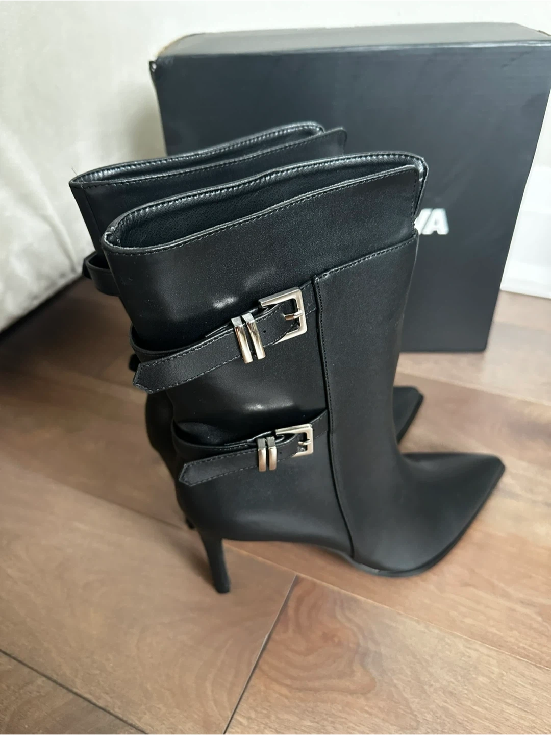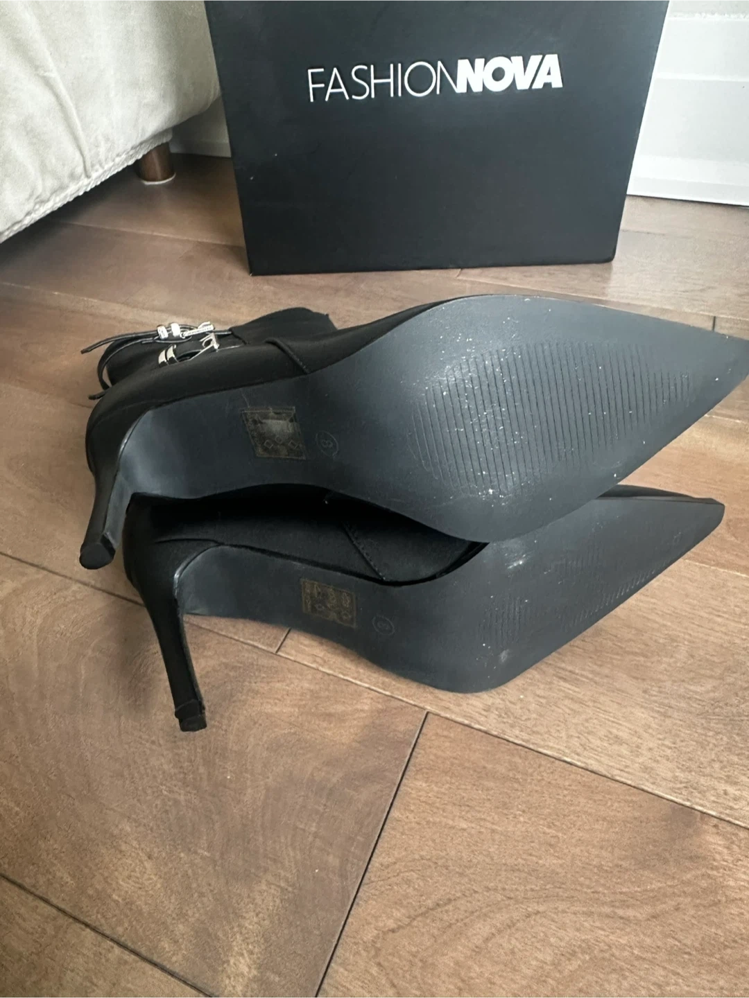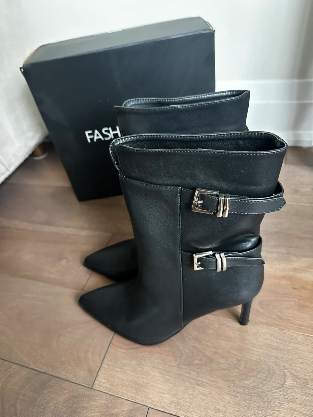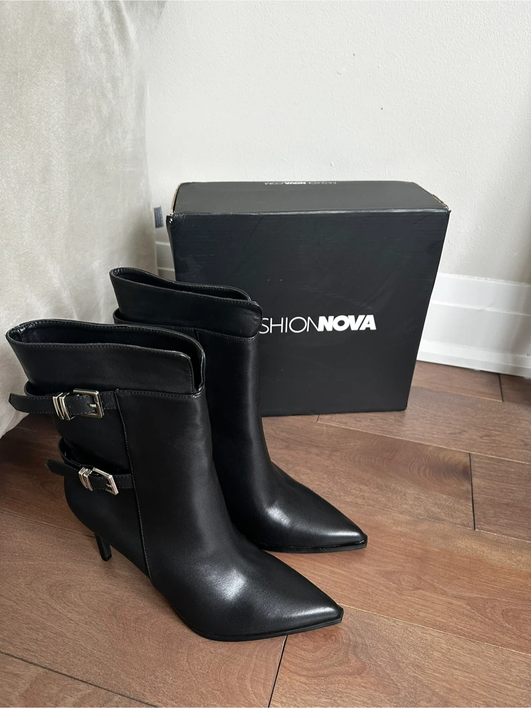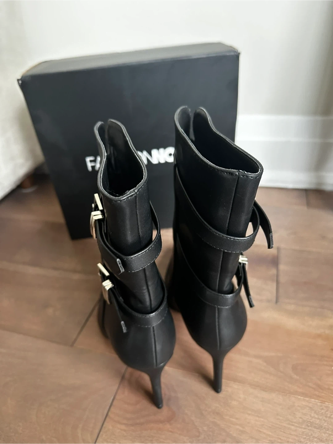 Fashion Nova Black Buckle Ankle Boots