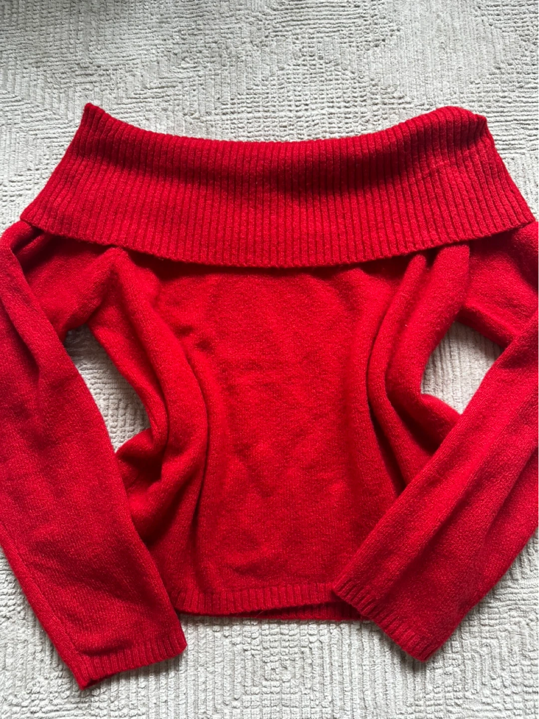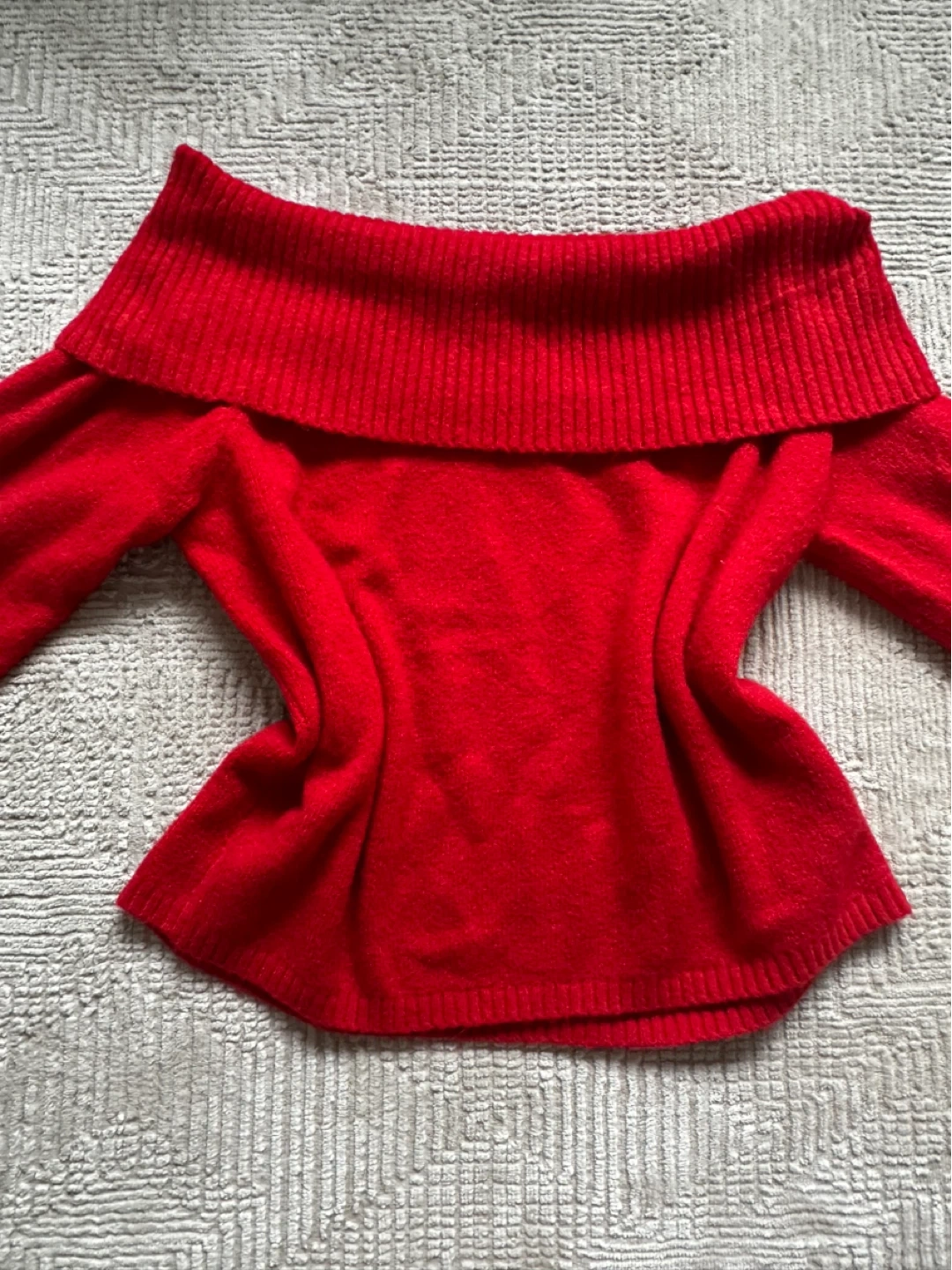 Simons- Twik Women's Red Off-the-Shoulder Sweater