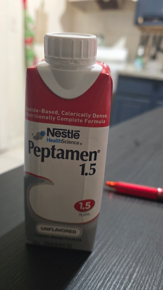 Peptide-based, calorically dense, nutritionally complete formula. Unflavored. 1.5 kcal/mL. Each carton is 250 mL (8.45 fl oz). Net 1.6 Gal (6 L).