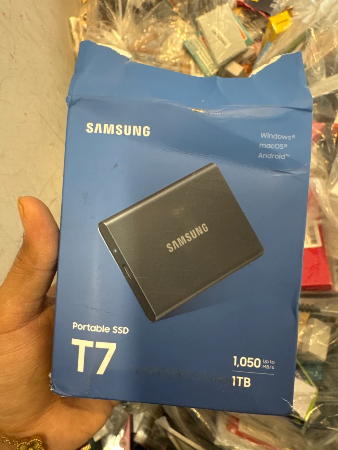 Selling a Samsung Portable SSD T7 with 1TB of storage. It's in excellent condition and comes with the box. Great for fast and reliable external storage for Windows, macOS, and Android devices. Perfect for backing up files or expanding your storage capacity!