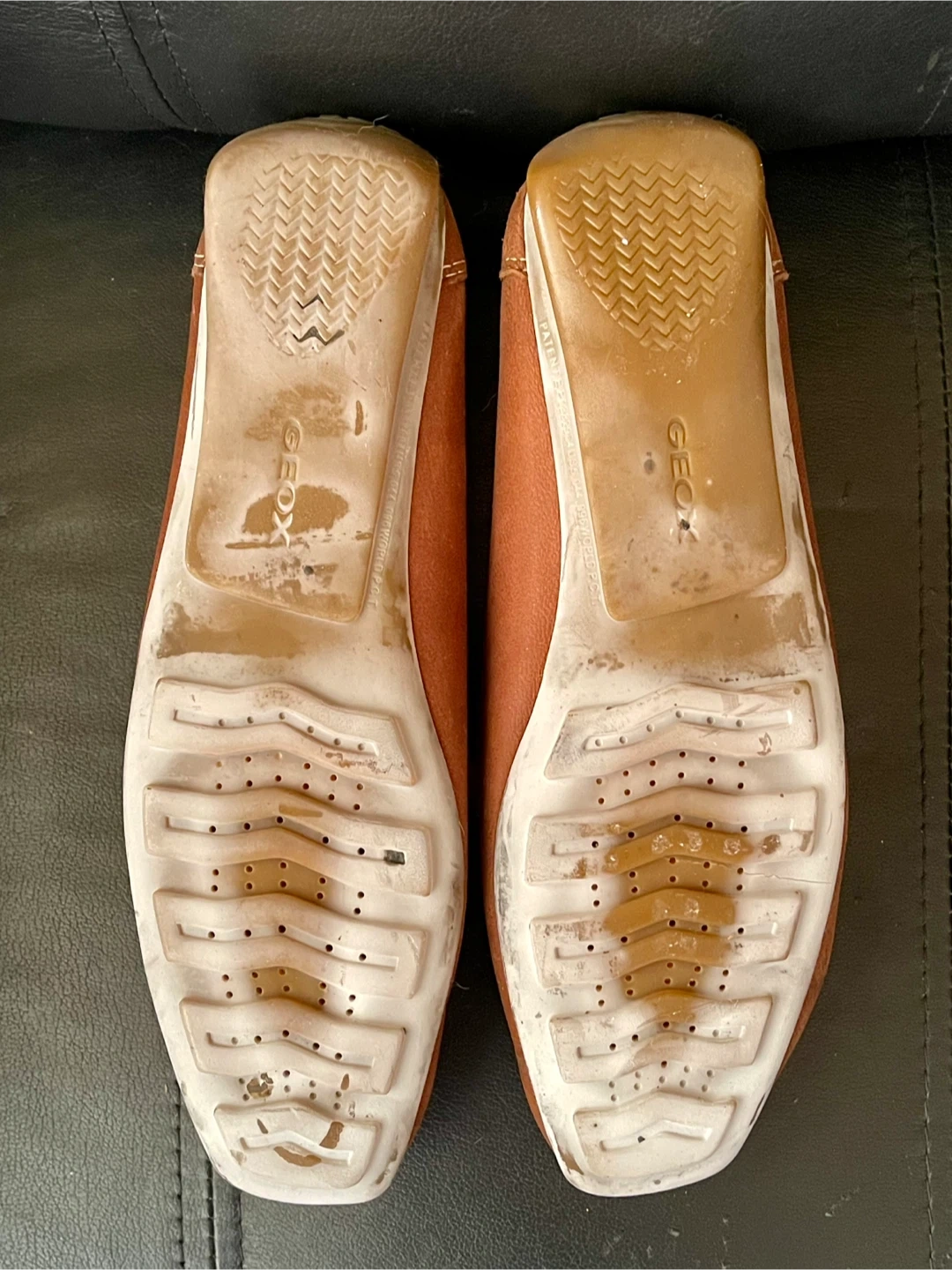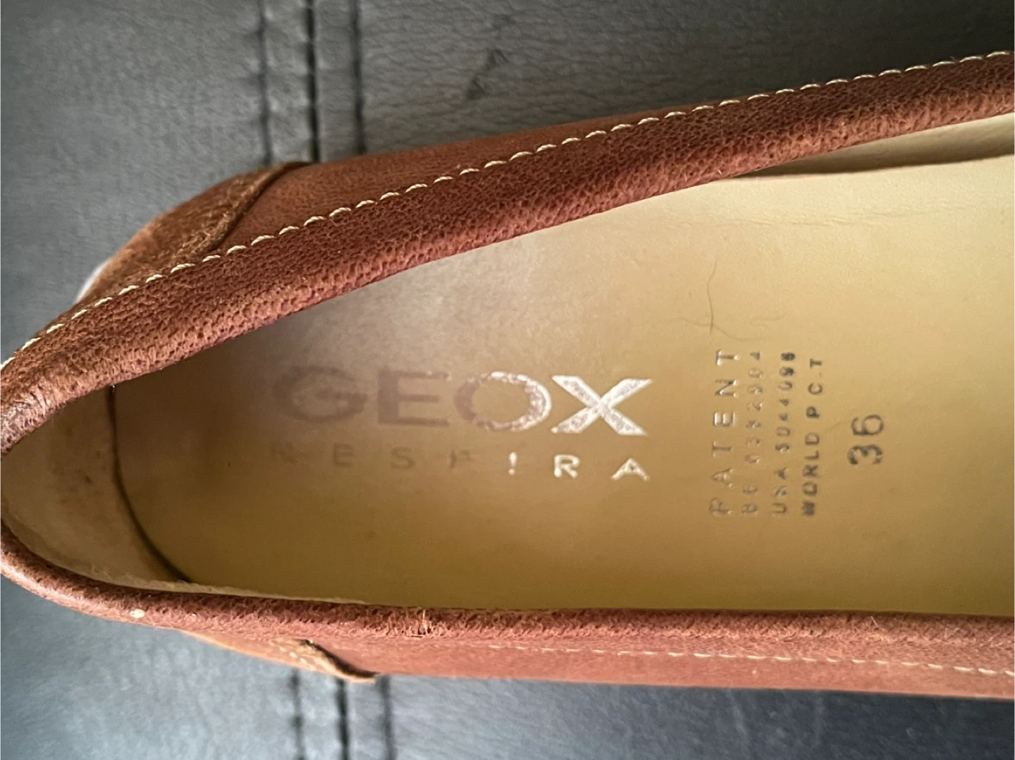 These are Geox women's loafers in a brown leather. They're a size 36 with Geox's Respira technology for breathability. These shoes are stylish and comfortable for everyday wear. Very good condition.