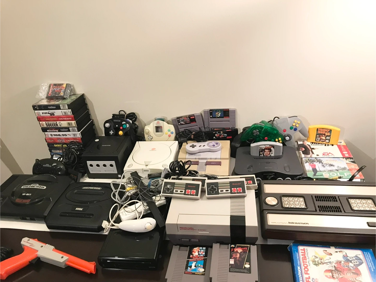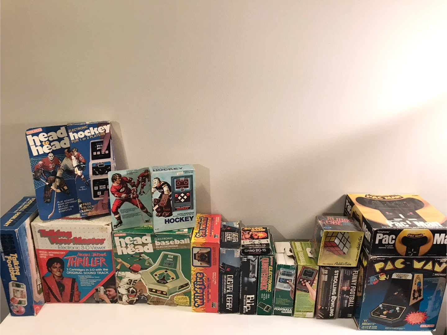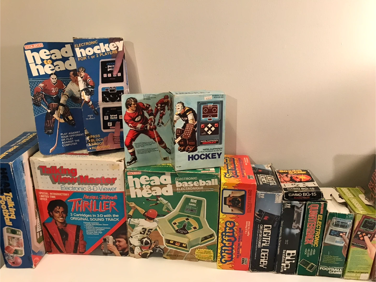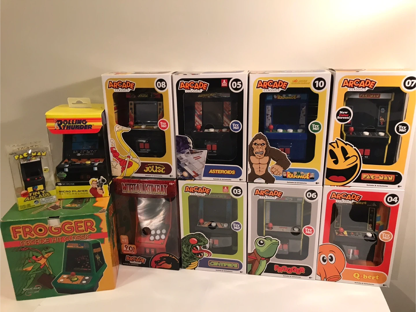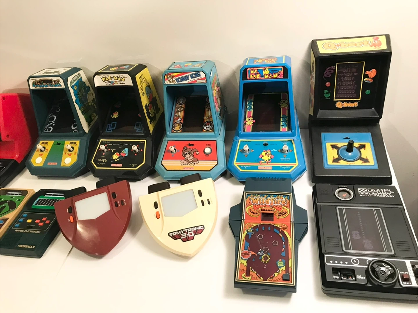 Collection of various retro handheld gaming devices including Nintendo Game Boy, Game Boy Advance, PSP, and Sega Game Gear. Also includes several mini arcade games and accessories. Great for collectors or anyone looking for nostalgic gaming.selling as a lot . 10$ and up .
