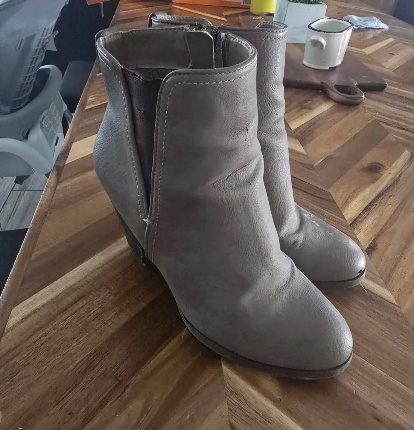 Selling a pair of grey ankle boots in great condition! They are a size 7 and feature a stylish heel. Perfect for adding a bit of flair to your outfit!