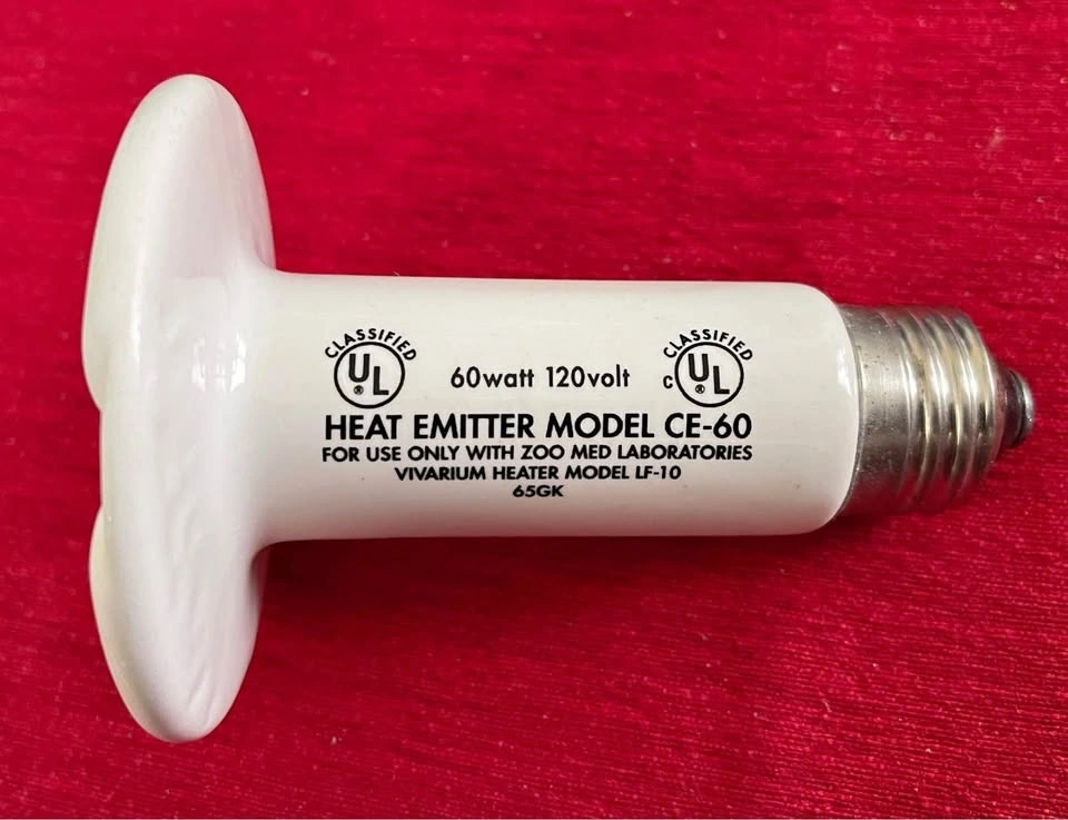 Zoo Med Laboratories Heat Emitter (60 watt) - like new. Herpcare Cricket Duster by Mardel, for dusting crickets with calcium. Like new. Price is for both items together.