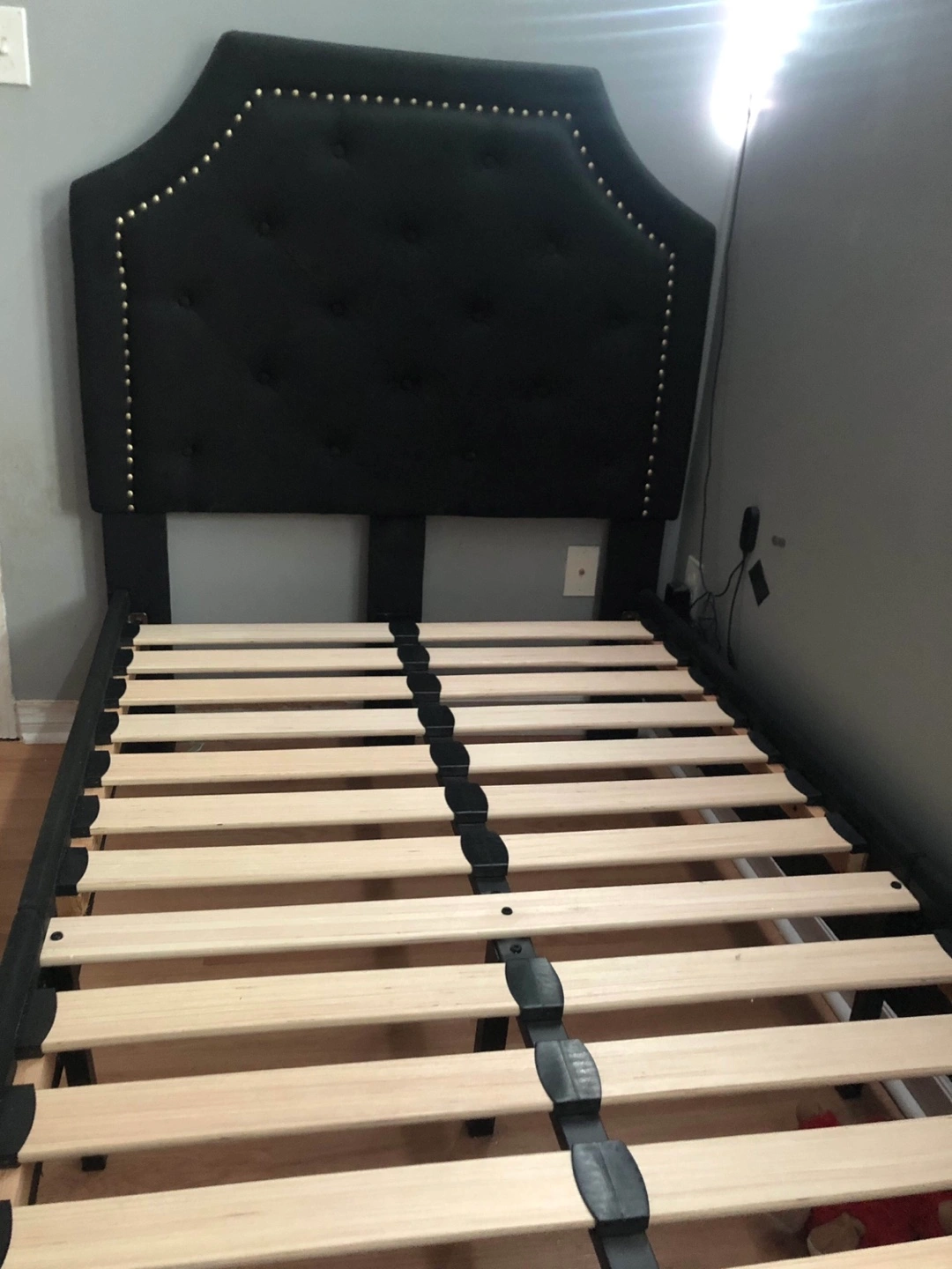 Headboard and bed frame in good condition. Mattress is not included. Needs to be assembled