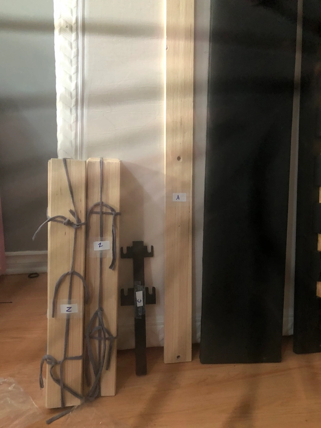 What it comes with: assembling instructions, Allen key, screws, headboard with 3 support posts, wooden supports, metal frames, upholstered frames