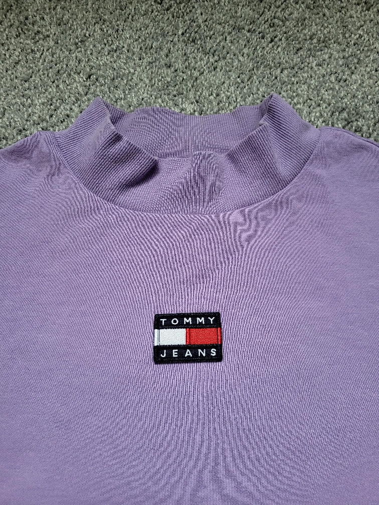 Selling a cute Tommy Jeans crop long-sleeve in a lovely purple/ violet colour It's a size small, carefully worn in perfect condition.
