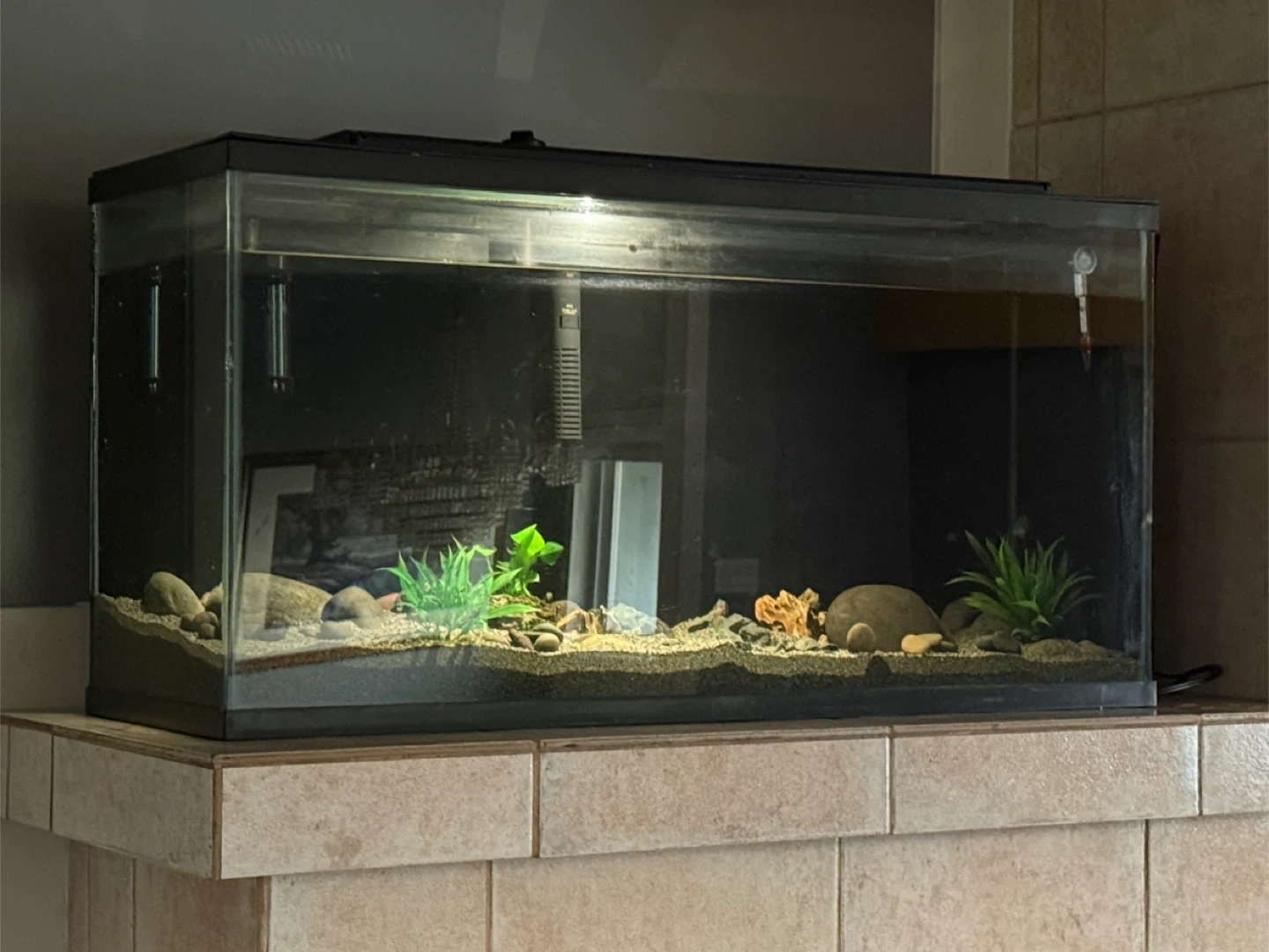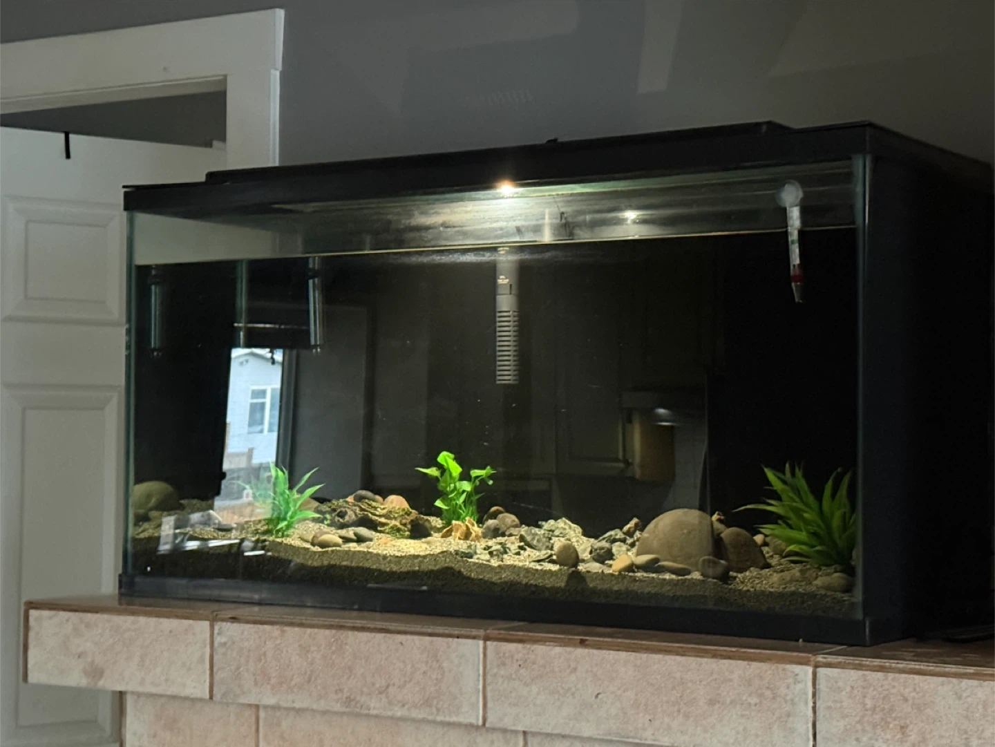 Selling a 40-gallon aquarium setup. Everything is used, well maintained, and in good working condition. Tank currently has a stick-on background (can be removed if preferred).