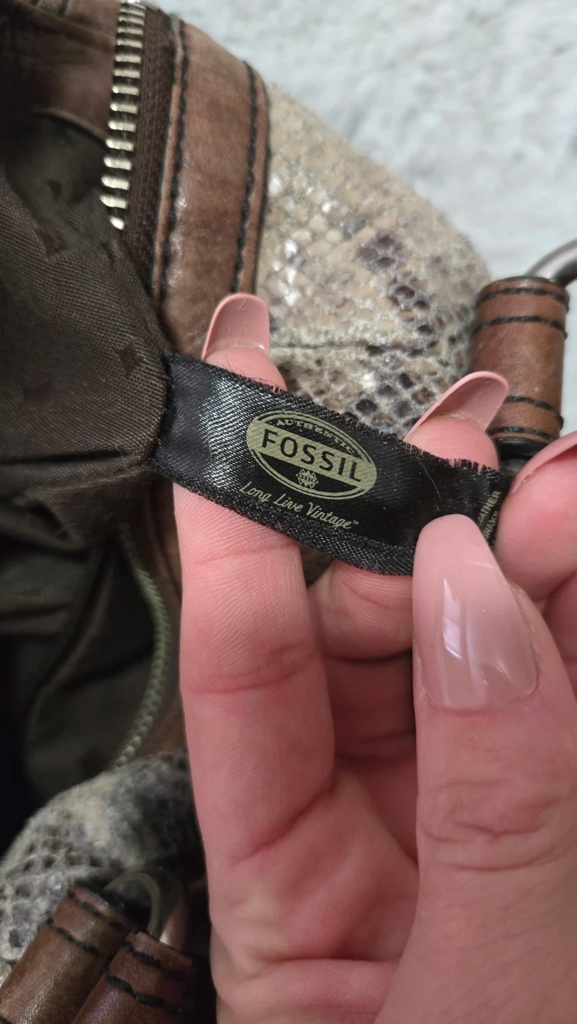 Selling this gorgeous faux snake skin Fossil bag. Can be made into a cross body as well. Genuine Fossil purse. Has good amount of pockets and is quite spacious too!