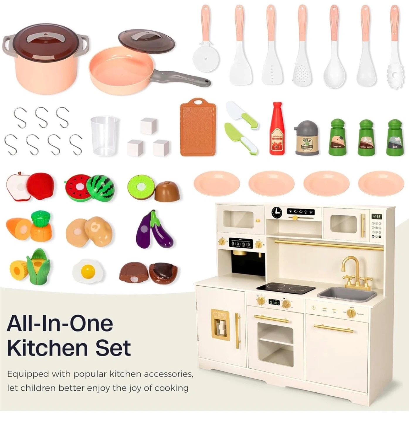 Kids Wooden Play Kitchen with Accessories