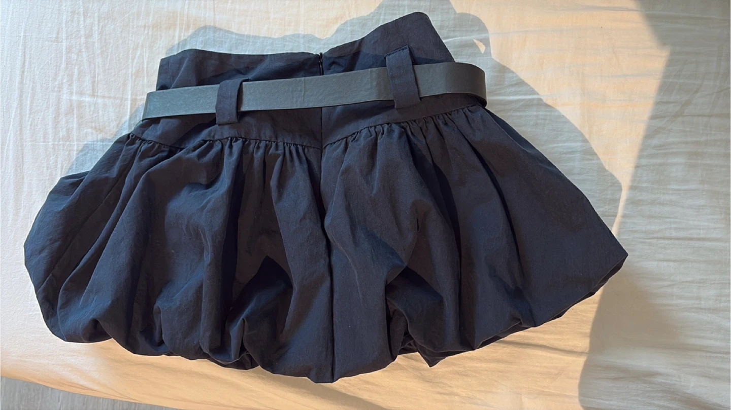 Navy Blue Bubble Skirt with Belt Size M