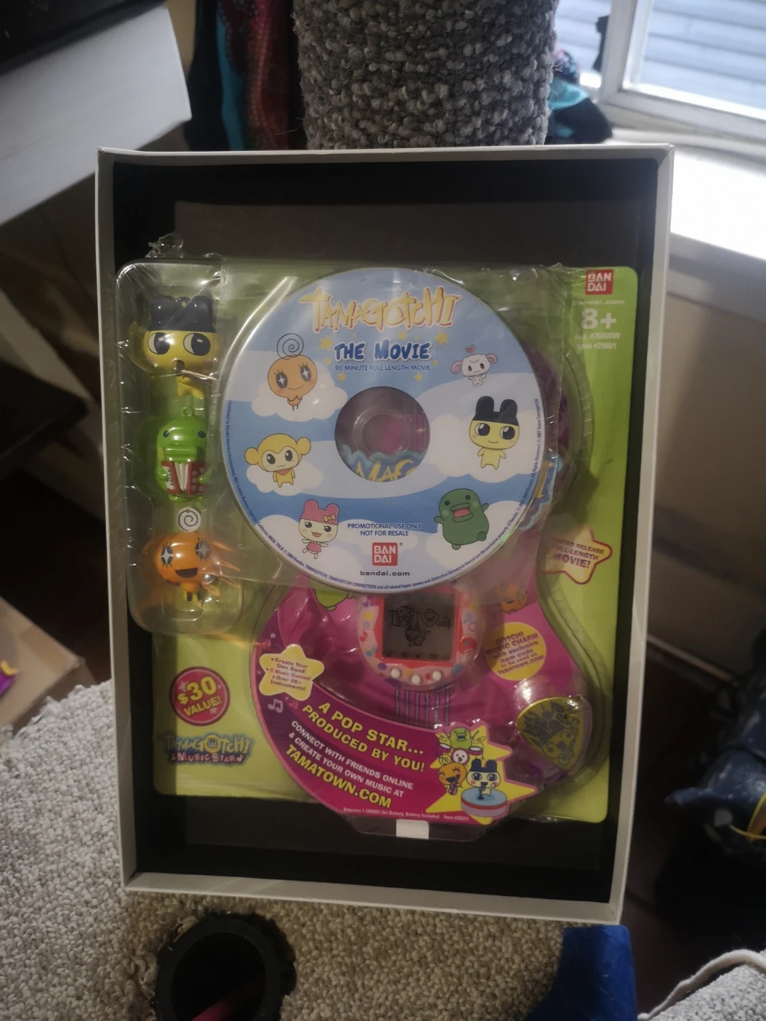 Pink Tamagotchi music star V6 in original sealed packaging, promotional bundle item , offering over 20 instruments and 8 music games. Connect with friends online and create your own music at Tamatown.com. Recommended for ages 8+.