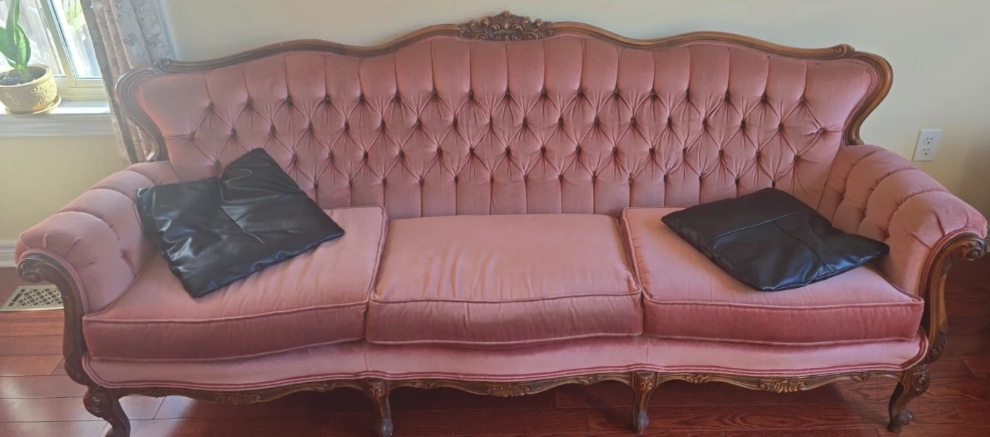 Vintage Tufted Sofa and Armchair Set