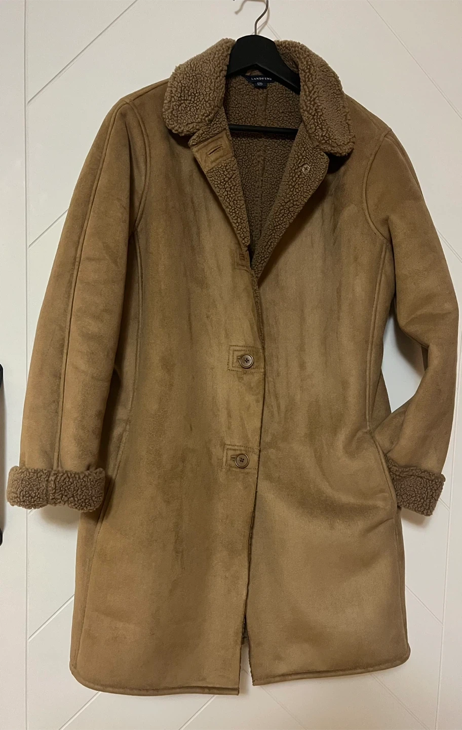 Lands' End Faux Suede Sherpa Lined Coat - Brown