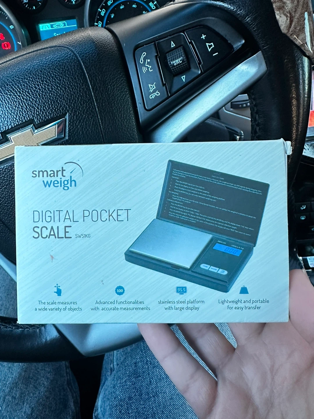 This is a Smart Weigh digital pocket scale with a 5kg capacity. It's lightweight and portable for easy transfer. The scale measures a wide variety of objects with advanced functionalities and accurate measurements. Stainless steel platform with a large display.