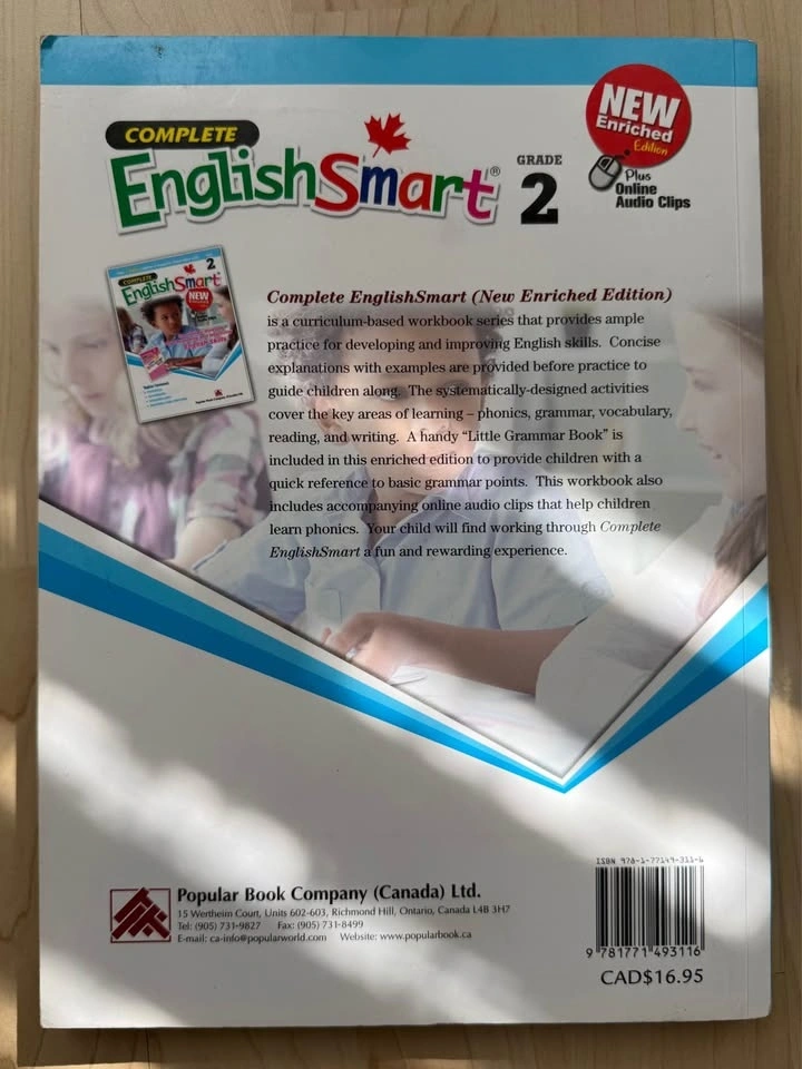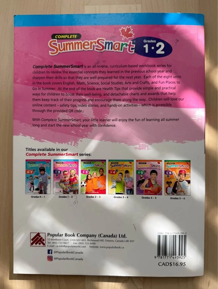 Help your child succeed with this essential set of three Grade 2 workbooks, covering English, Math, and more! These popular Canadian curriculum titles are the perfect way to reinforce classroom learning at home. Condition: Gently used (Some pages may be completed, but plenty of learning left!). Includes: Complete EnglishSmart Grade 2, SummerSmart Grades 1-2, and Grade 2 Complete Curriculum. Total regular price: $56.85+Tax.