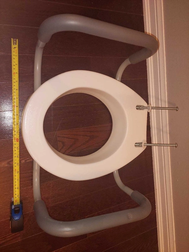 Selling a new Carex toilet riser with removable arms, designed to assist those with mobility issues. This sturdy riser adds 5 inches of height and support, making it easier and safer to use the toilet. The arms are removable for easy cleaning, and it's simple to install. It's in new condition and ready to provide added comfort and safety. Similar items are listed for $50 - $100, so I'm asking $45. If you see this ad, it's still available!