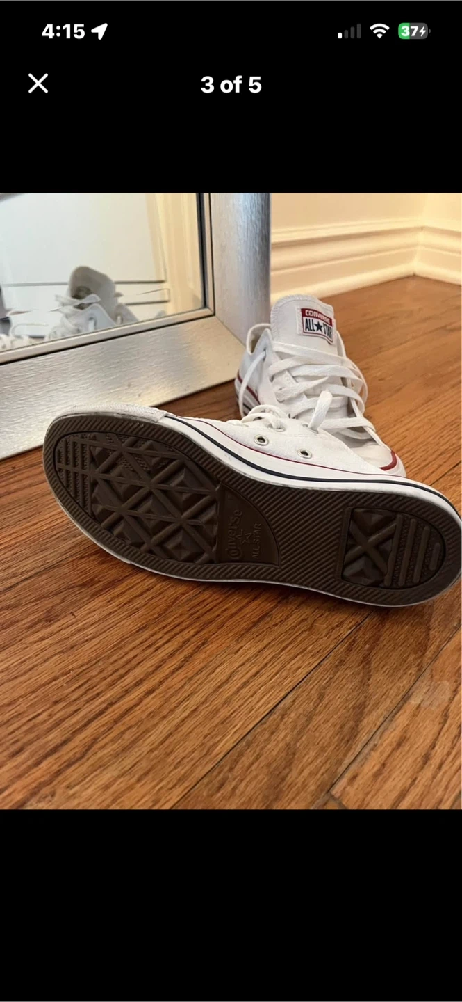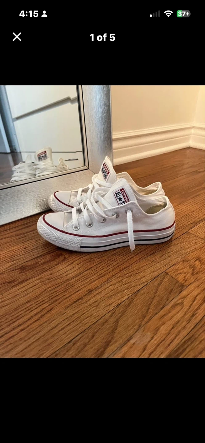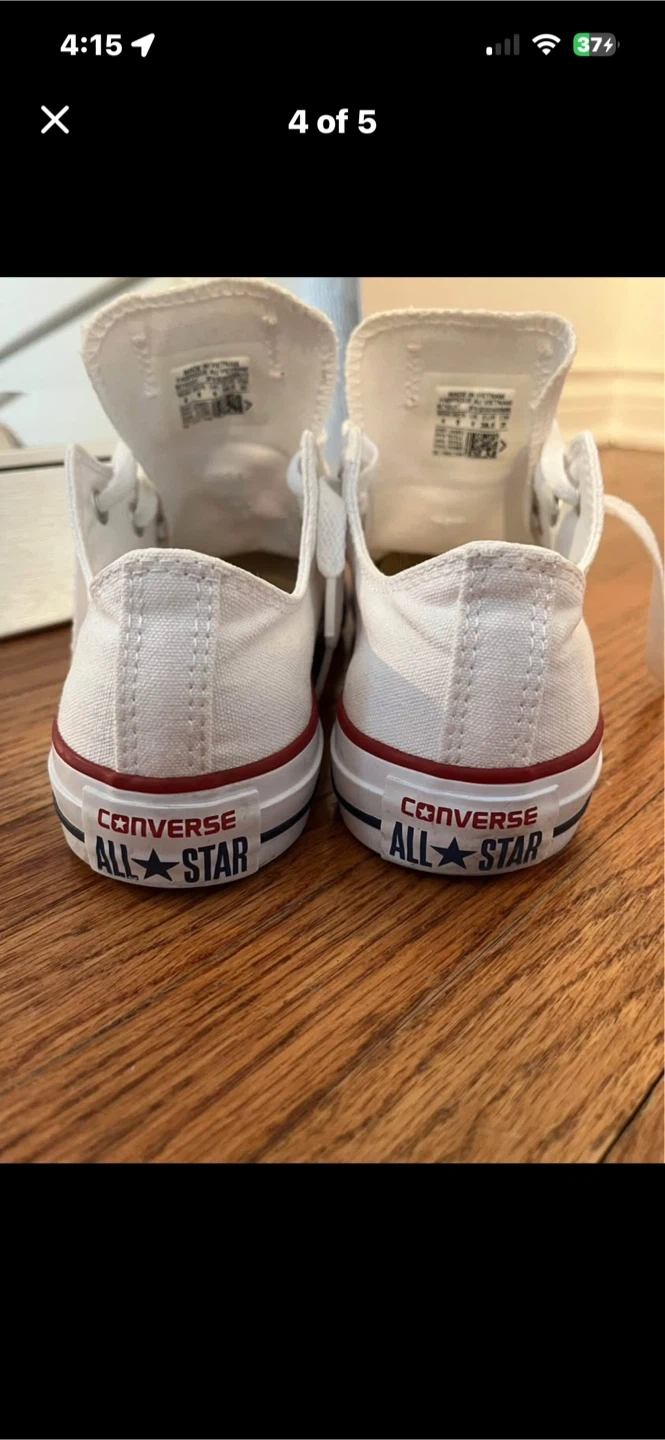 Classic white Converse All Star low top sneakers. Canvas upper and rubber sole. Perfect for everyday wear!