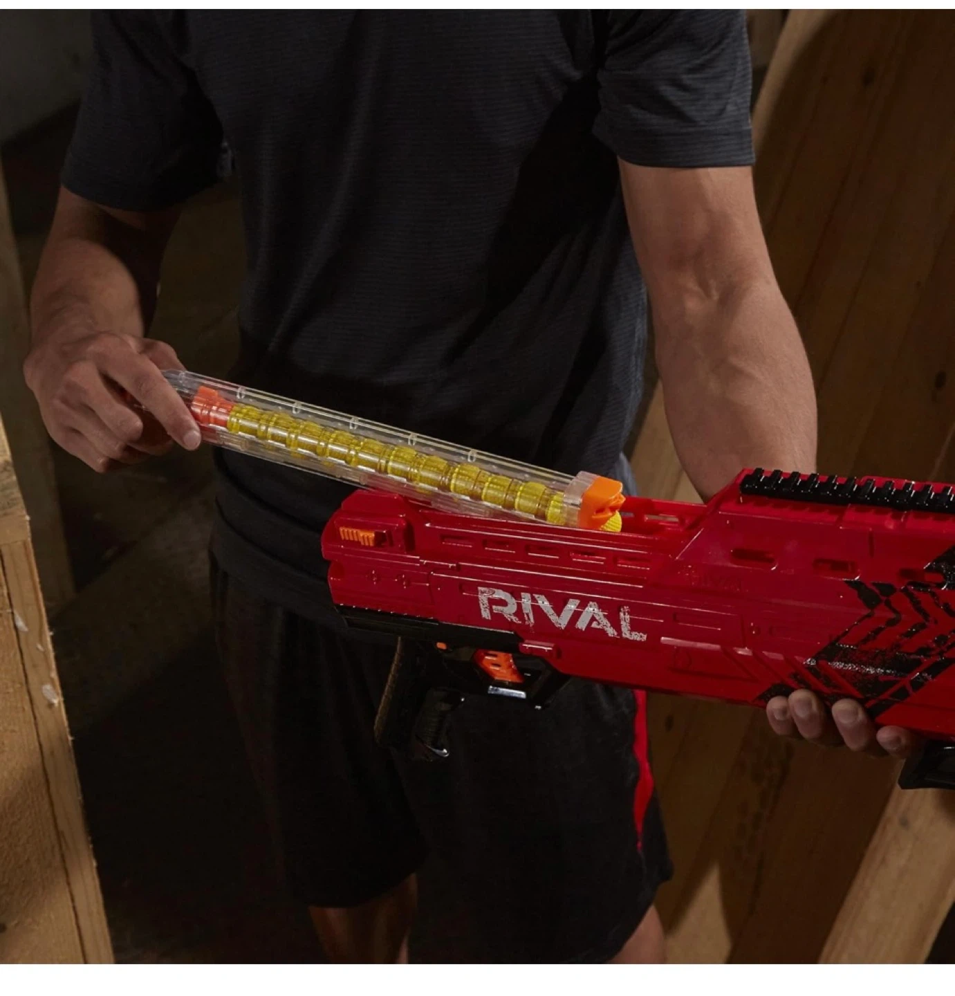 * Spring-action blaster has a trigger lock, and tactical rail