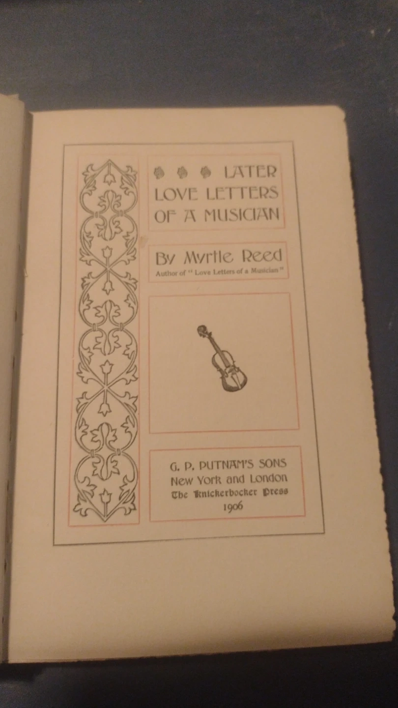 This is a copy of "Later Love Letters of a Musician" by Myrtle Reed, published in 1906. It was set up and electrotyped in August 1900. The book features a dedication to "Myrna Heathie."🥇