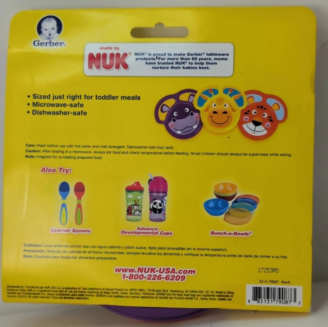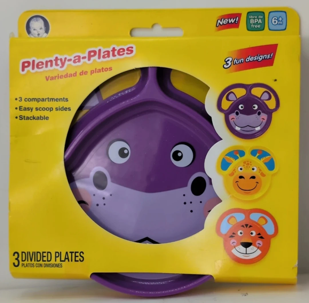 These NUK Plenty-a-Plates are made for toddlers and come with three fun designs. They're microwave-safe and dishwasher-safe for easy cleanup. They feature 3 compartments and easy scoop sides.