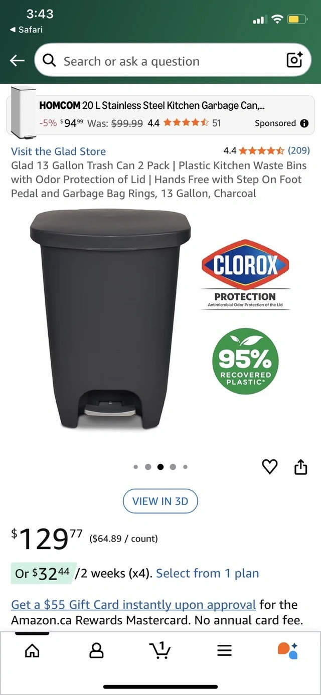 This is a previously owned Glad garbage bin, perfect for any room in your home, featuring a foot pedal for easy, hands-free operation. This bin has been well-maintained and is ready for a new home. Here are some details: