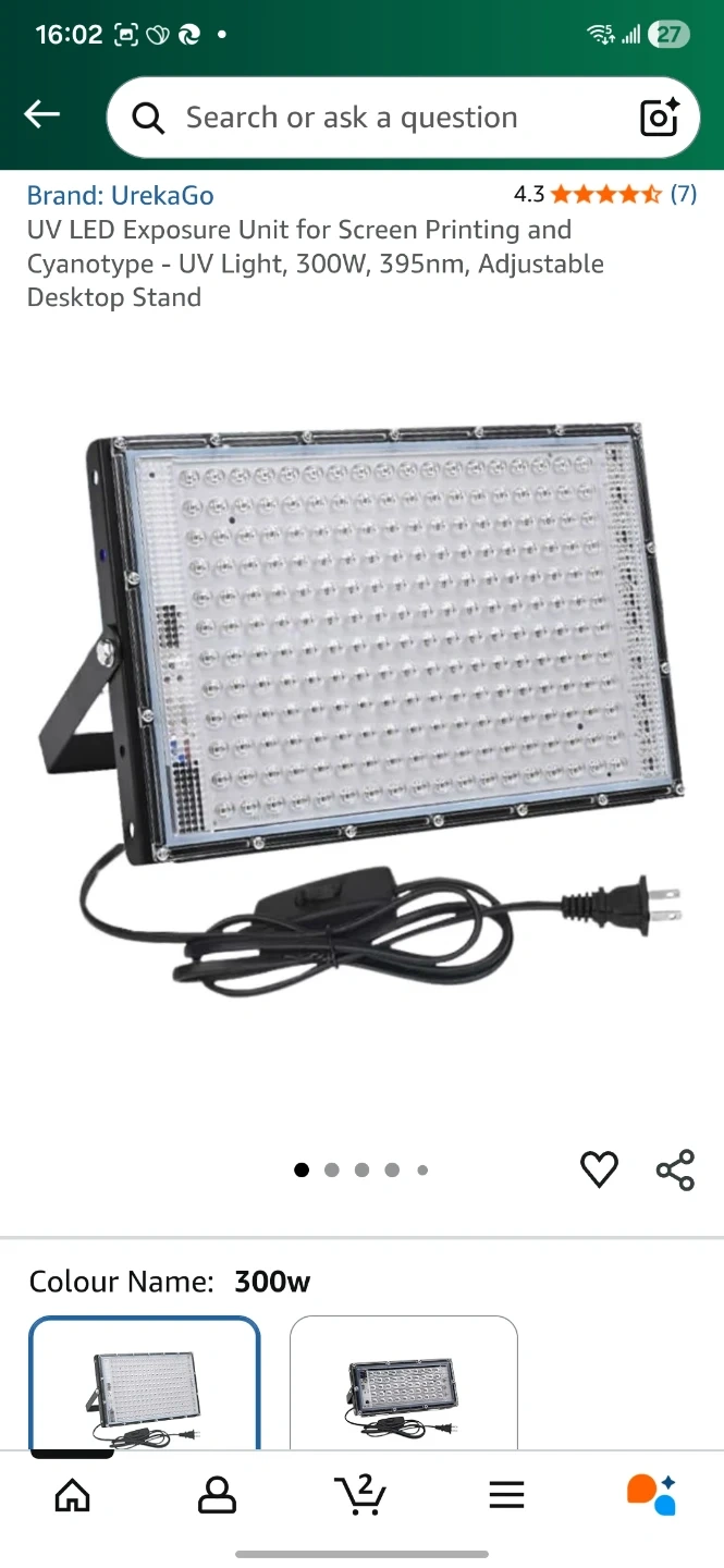Selling a UrekaGo UV LED Exposure Unit, perfect for screen printing and cyanotype! It features a 300W, 395nm UV light with an adjustable desktop stand. The exposure area is 4K/A3/12x16in. The unit is in great shape and ready for your projects!