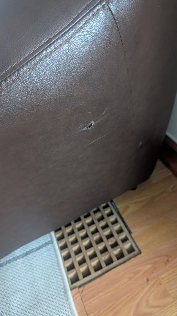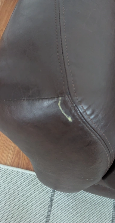 Selling a brown leather loveseat and armchair set. It has some wear and tear, as shown in the pictures. Perfect for a living room or den!