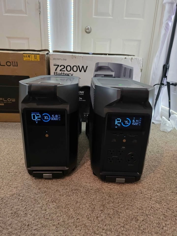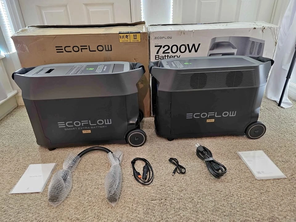 EcoFlow DELTA Pro portable power station with Smart Extra Battery. Units are brand new and only opened for inspection/testing. Both power on perfectly.