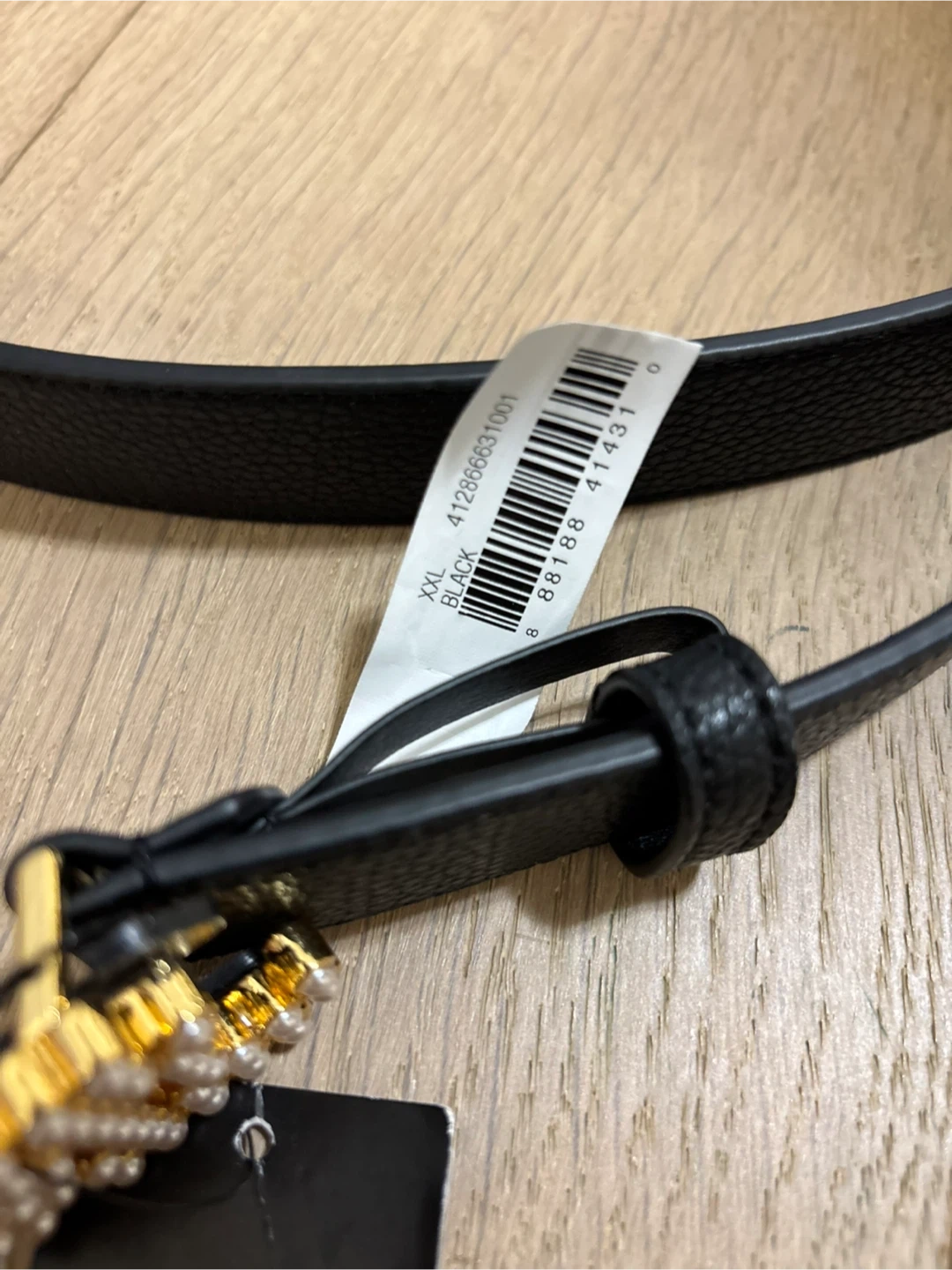 Selling a brand new Ralph Lauren belt in black, size XXL. The belt has a stylish gold-tone buckle adorned with faux pearls. It's perfect for adding a touch of elegance to any outfit!