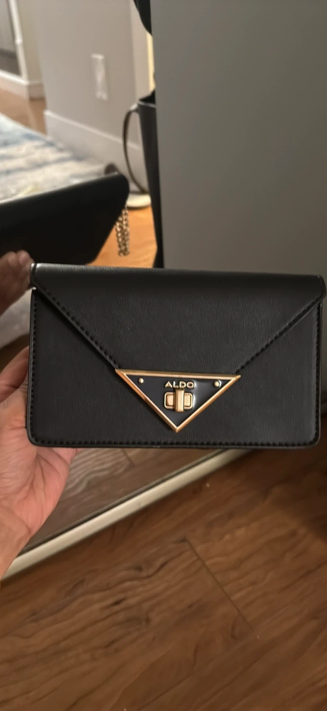 Selling a stylish black clutch from ALDO! It's in great condition and perfect for a night out or special occasion. The clutch features a sleek design with a gold-tone accent. Message me if you're interested!