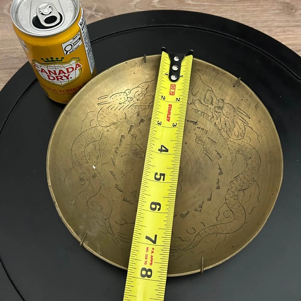 Beautiful vintage brass plate featuring an intricate hand-etched dragon design. The detailed composition shows two traditional dragons surrounding a central motif, with decorative clouds and wave patterns that create a rich textured background. The warm brass tone and natural aged patina give the piece a classic vintage character. The back is stamped “Made in China” and includes a spring-style wall hanger, making it easy to display on a wall or on a decorative stand. A great collectible piece for lovers of Chinoiserie décor, Asian-inspired art, vintage brass metalware, or unique wall accents. Pick up in the Seton area, Calgary. Cash and e-transfers accepted. Feel free to message if you have any questions! These are not new things, so please look carefully at the photos. Measurements can be seen in the photos.