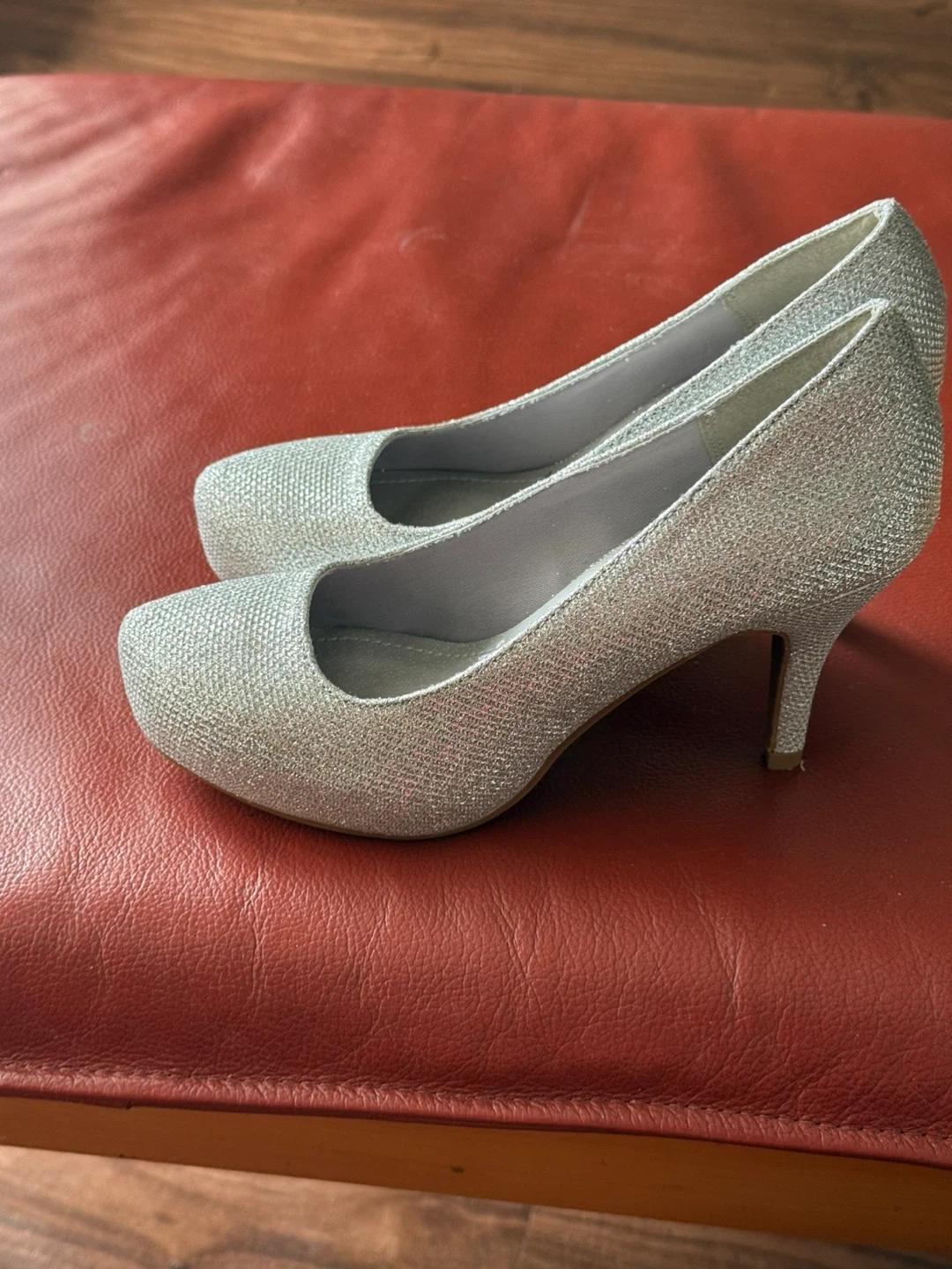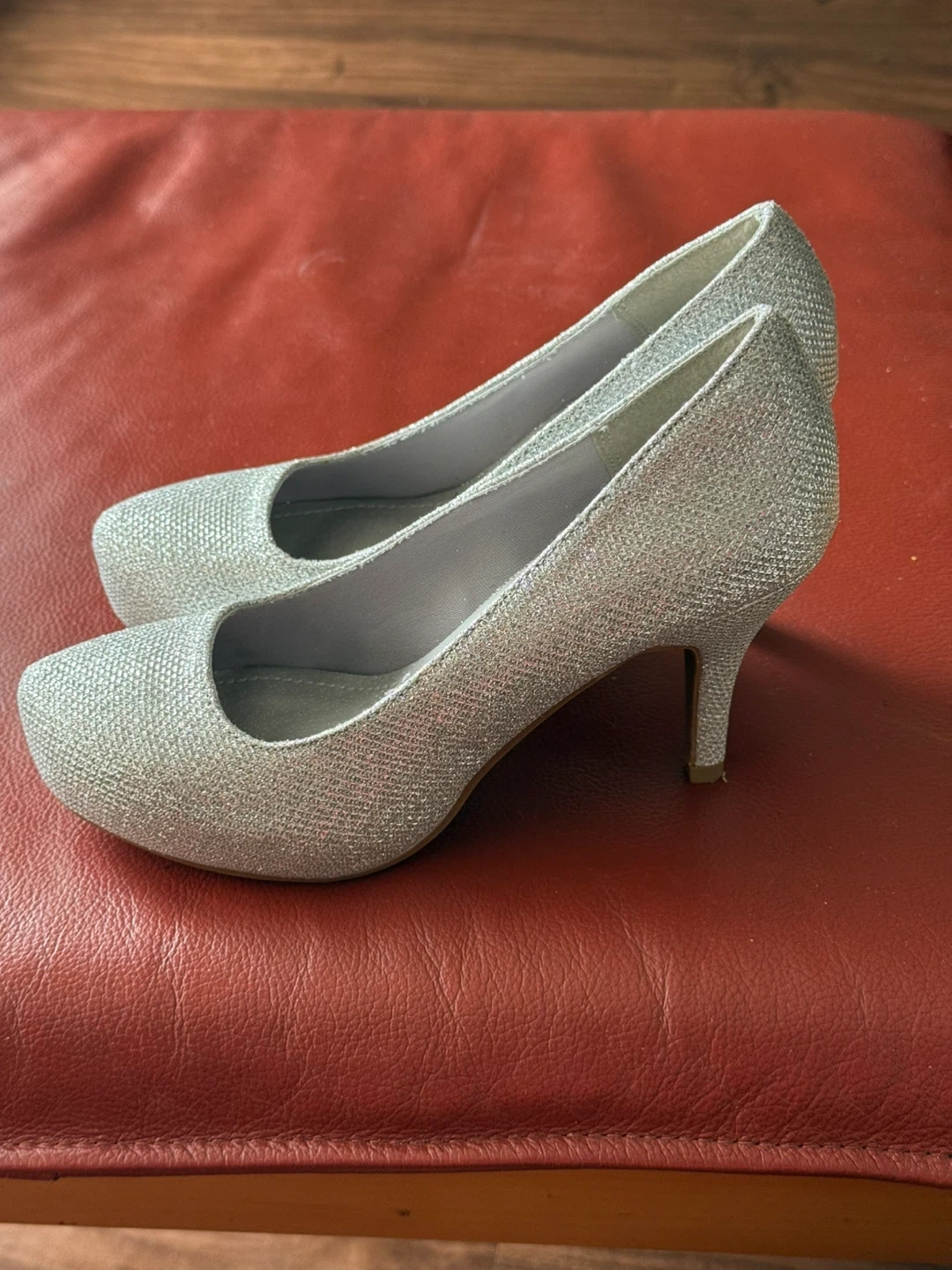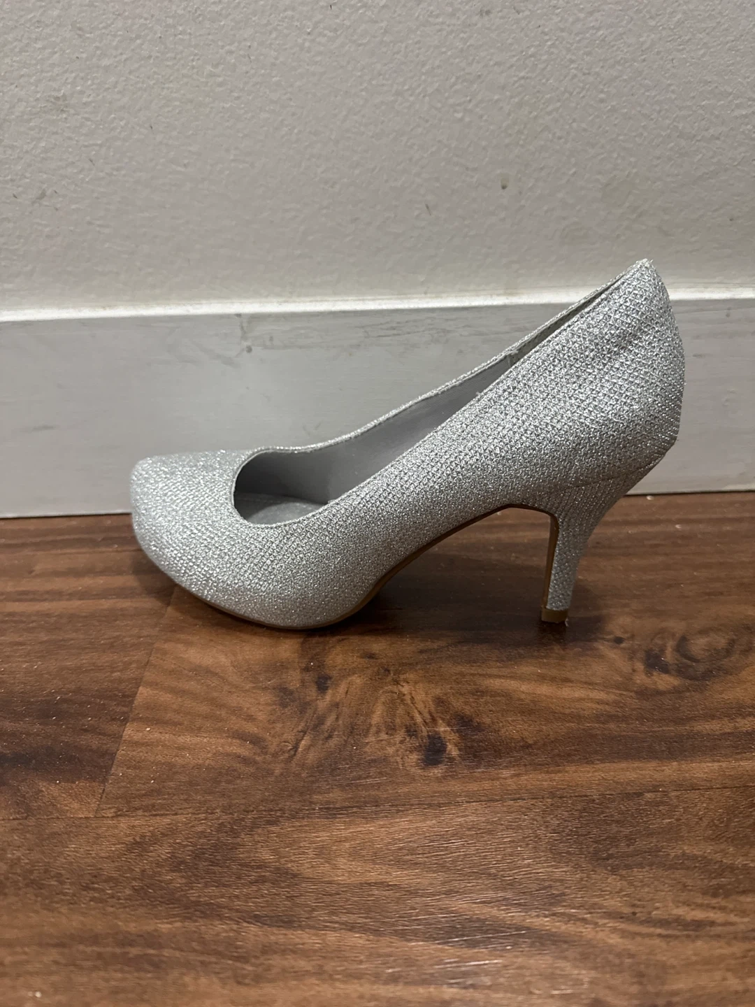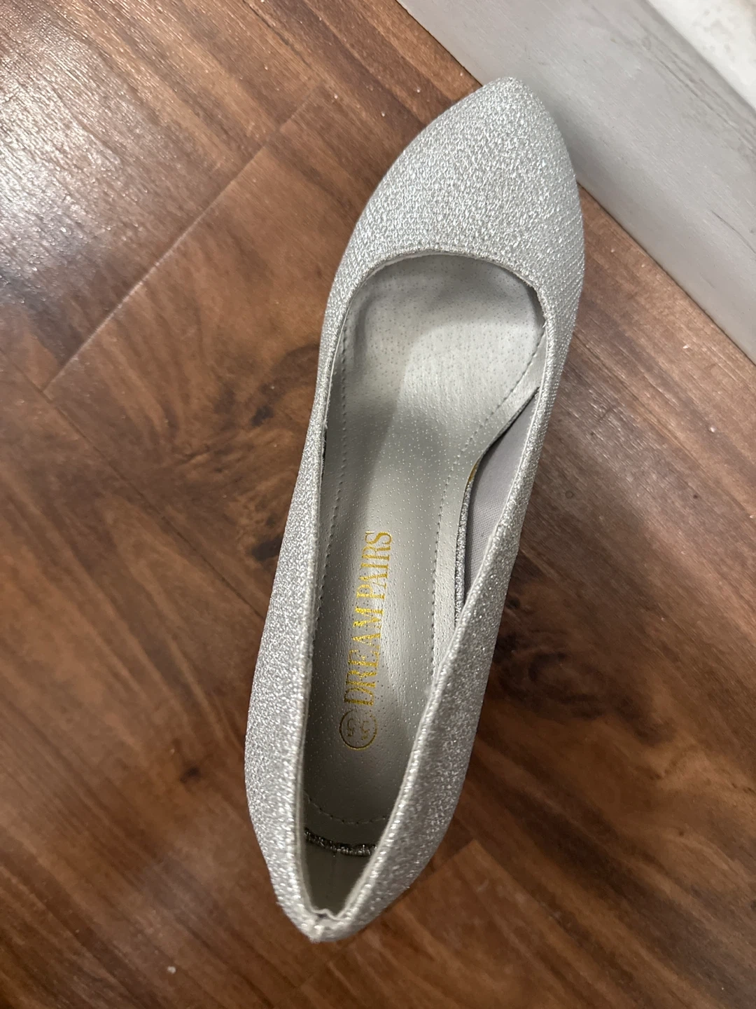 These Dream Pairs heels feature a sparkly silver glitter finish. The shoe has a classic pump silhouette with a medium heel height. They're perfect for adding some shine to a special occasion outfit!