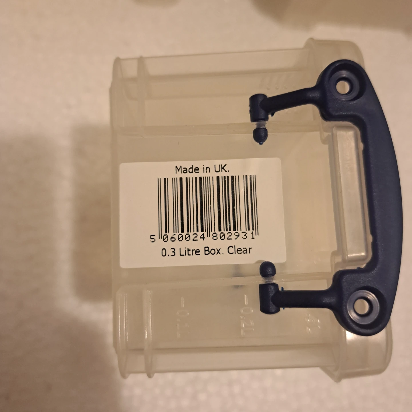 Lids are separate pieces, blue hinges lock into place to hold them closed.