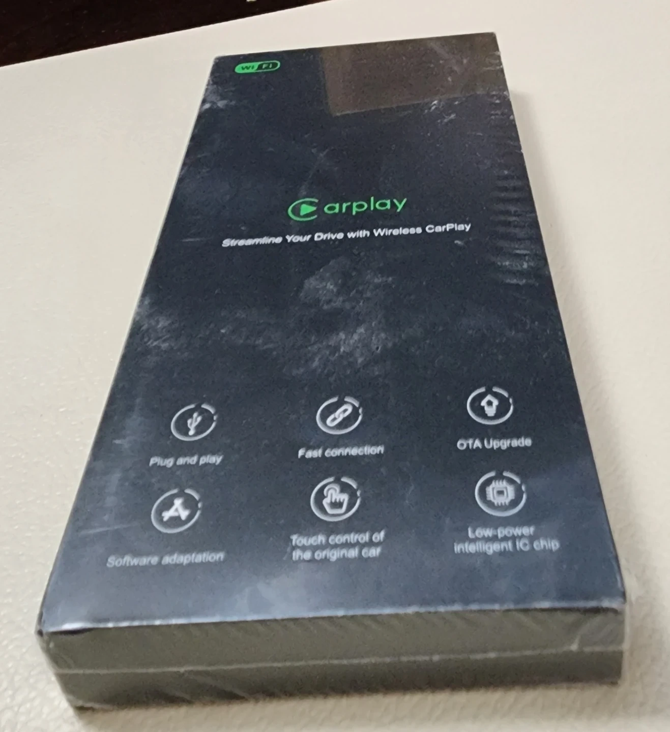This is a new wireless CarPlay adapter that allows for plug and play connection. It supports fast connection, OTA upgrades, software adaptation, and touch control of the original car. It also features a low-power intelligent IC chip.