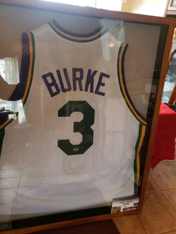 Up For Sale Is This brand new beautiful quality custom made Utah Jazz Jersey signed by their young gun point guard, Trey Burke MICHIGAN WOLVERINES TREY BURKE AUTOGRAPHED BLUE JERSEY Description: This is a White Jersey that has been hand signed by Trey Burke. The approximate size is XL. It has nice sewn in name and numbers. This item has been certified authentic by PSA/DNA and comes with its certificate. Hand Signed and Frame asking $200 in the frame Or $150 with out the frame pick up on old Richmond road in Nepean