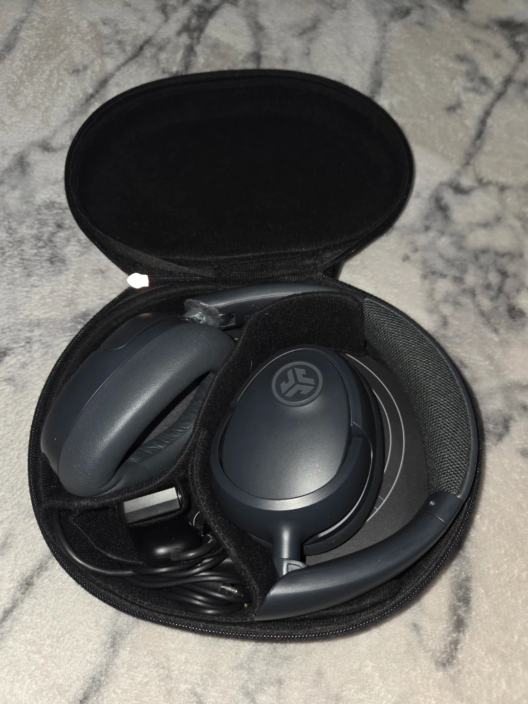 Selling a pair of JLab Studio Pro ANC over-ear headphones in black! They come with their case and all the necessary cables. Perfect for listening to music or podcasts on the go!