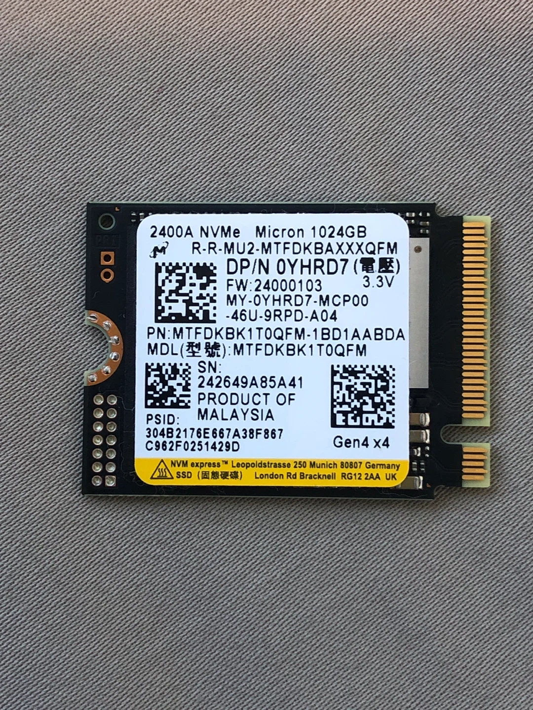 Selling a Micron 2400A NVMe 1024GB SSD. This is a solid-state drive with a capacity of 1024GB. It's in great condition and ready to be used in your system!