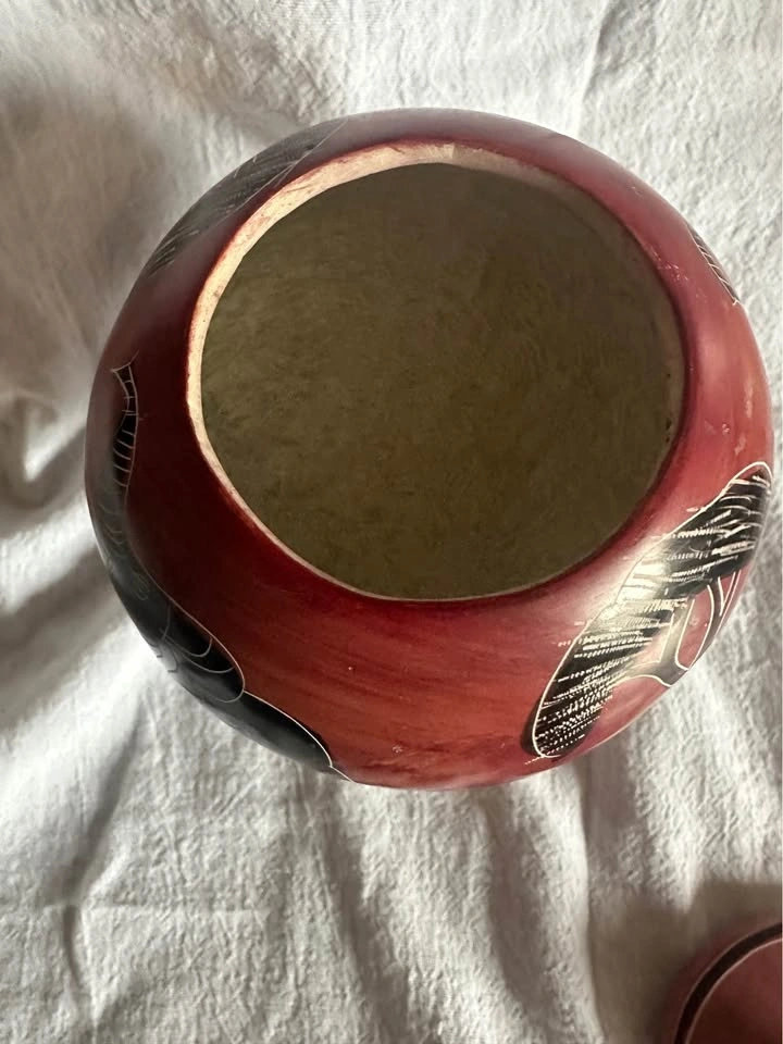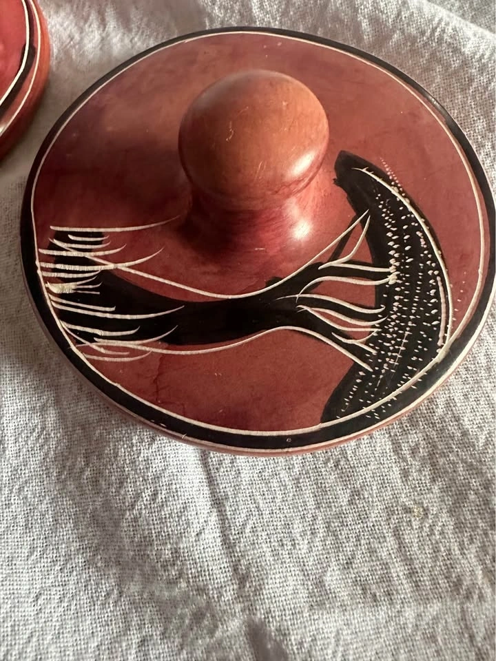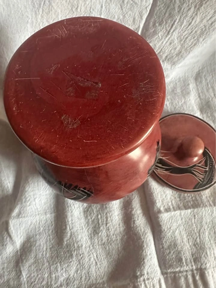 One-of-a-kind, hand sculpted and etched genuine soapstone trinket, keepsake ring box. Vintage item of rarity in pristine pre-owned condition.