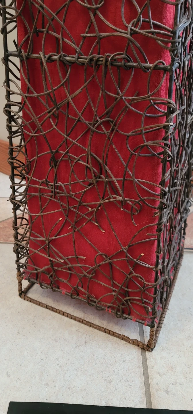 ✨️ Lightweight metal frame wrapped in intricately woven. wood layered over rich red fabric