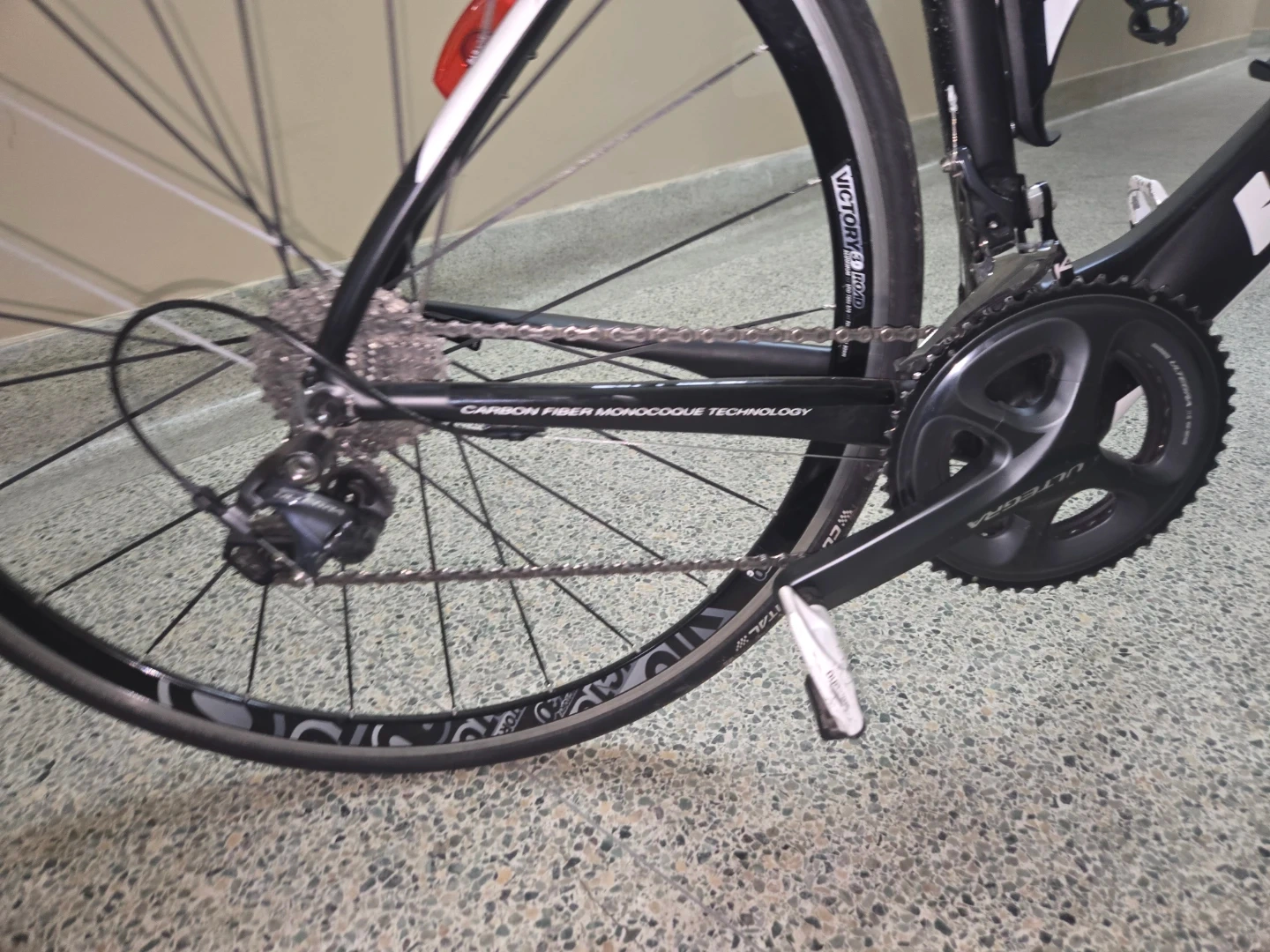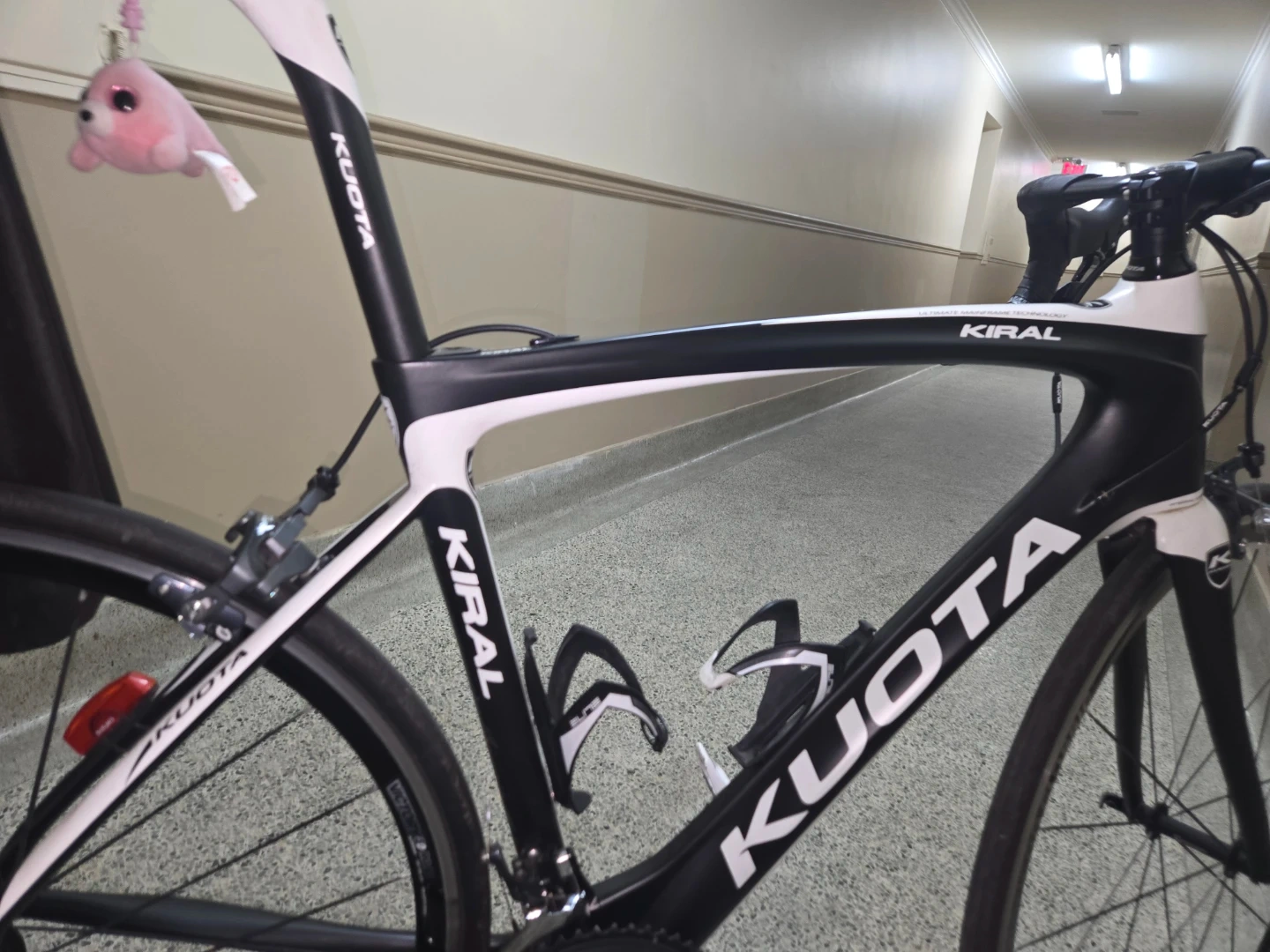 This Kuota Kiral road bike features a lightweight carbon fiber monocoque frame. It's equipped with Ultegra components and Continental tires. This bike is ideal for road cycling enthusiasts looking for performance and speed.