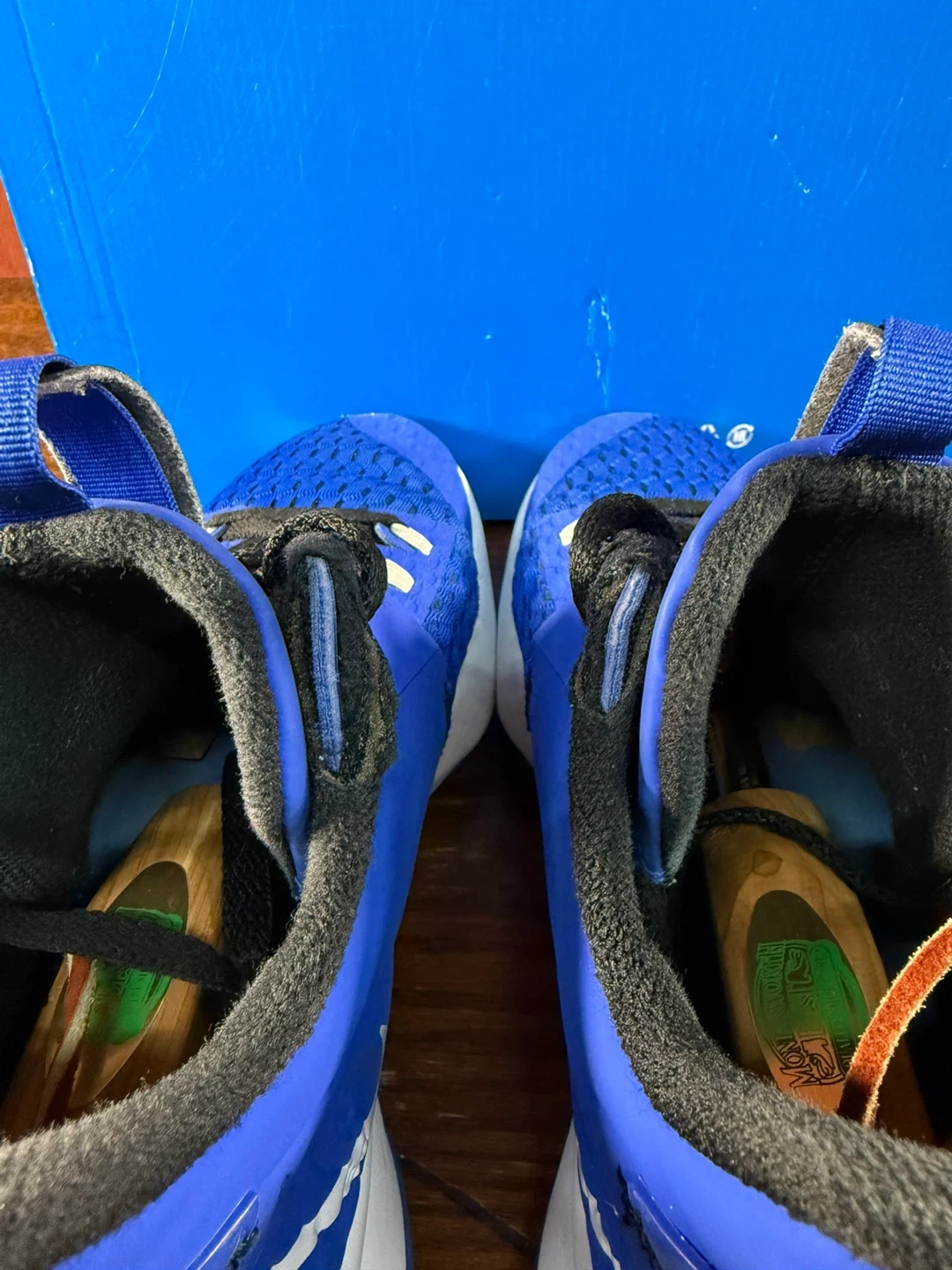 Vibrant royal blue basketball sneakers with a contrasting white Nike Swoosh.
