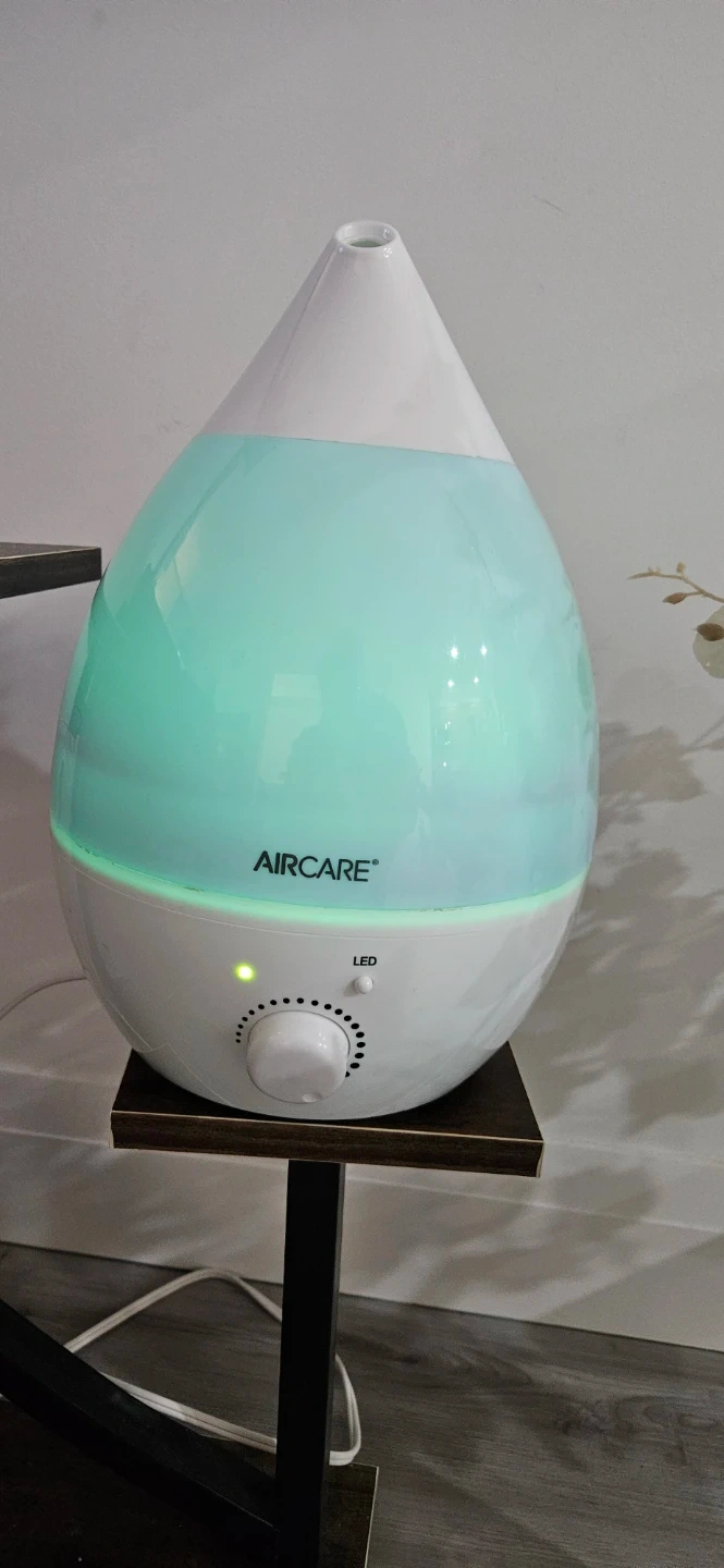 Selling an AIRCARE Aurora Ultrasonic Cool Mist Humidifier. It features an essential oil diffuser and multicolor LED nightlight. It has up to 12 hours of runtime, a 1-gallon tank, and covers up to 750 square feet. Comes with the box