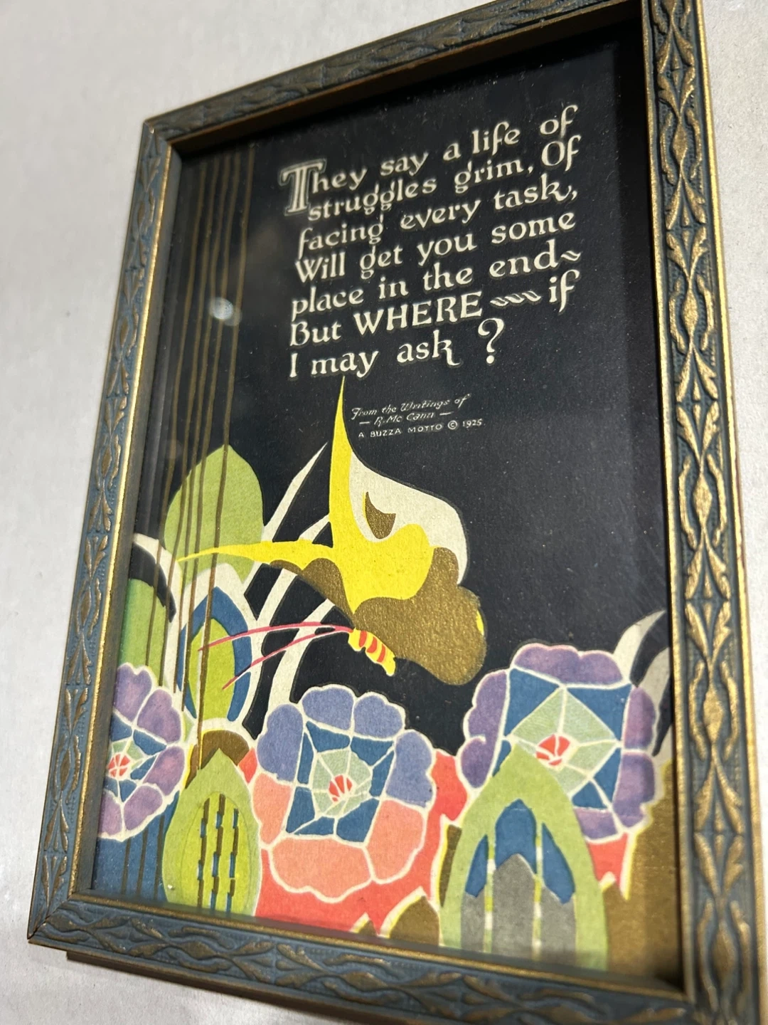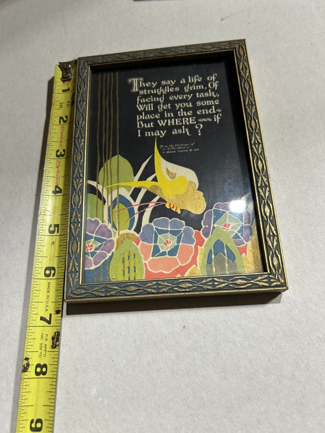 Vintage framed art print featuring a floral design and a quote. The print is from the writings of R. W. Ginn. It was published in 1922. This decorative piece would add a touch of vintage charm to any room.
